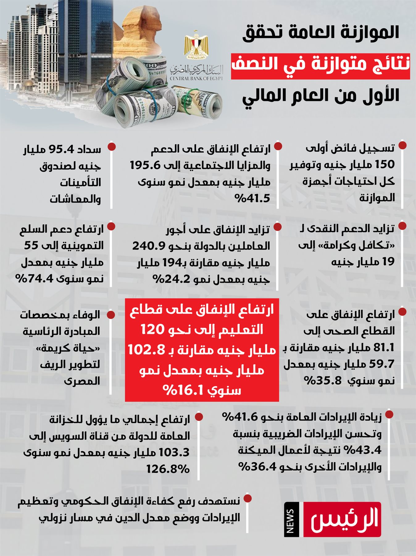 ارتفاع الإنفاق على قطاع التعليم إلى نحو 120 مليار جنيه مقارنة بـ 102.8 مليار جنيه بمعدل نمو سنوي 16.1%