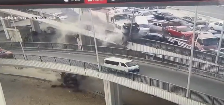 شهد محور المريوطية حادثا مروعا، أمس الثلاثاء، أسفر عن دهس سيارة نقل تريلا لـ 8 سيارات وانتهى بسقوط 3 منها من أعلى المحور؛ إحداها مُحملة بالأغنام وأخرى ميكروباص والثالثة ملاكي.
