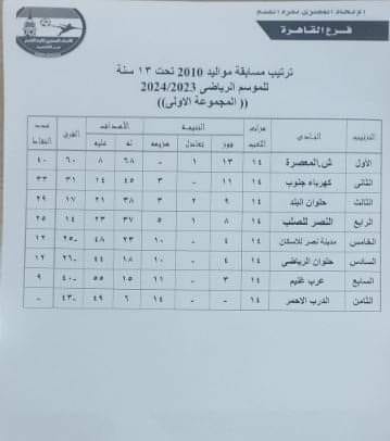 مركز شباب المعصرة 2010 يتصدر مجموعته في مسابقة القاهرة
