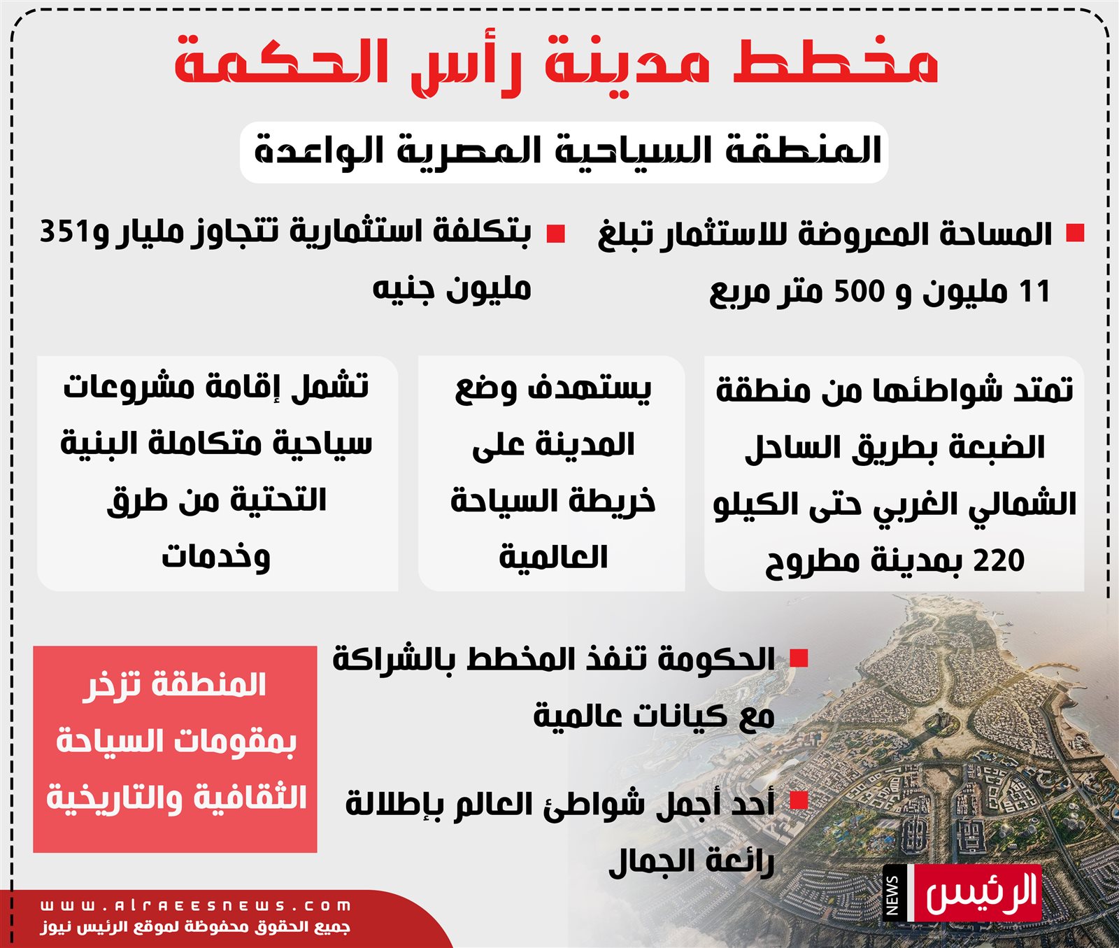 إنفوجراف| معلومات لا تعرفها عن مدينة رأس الحكمة الجديدة