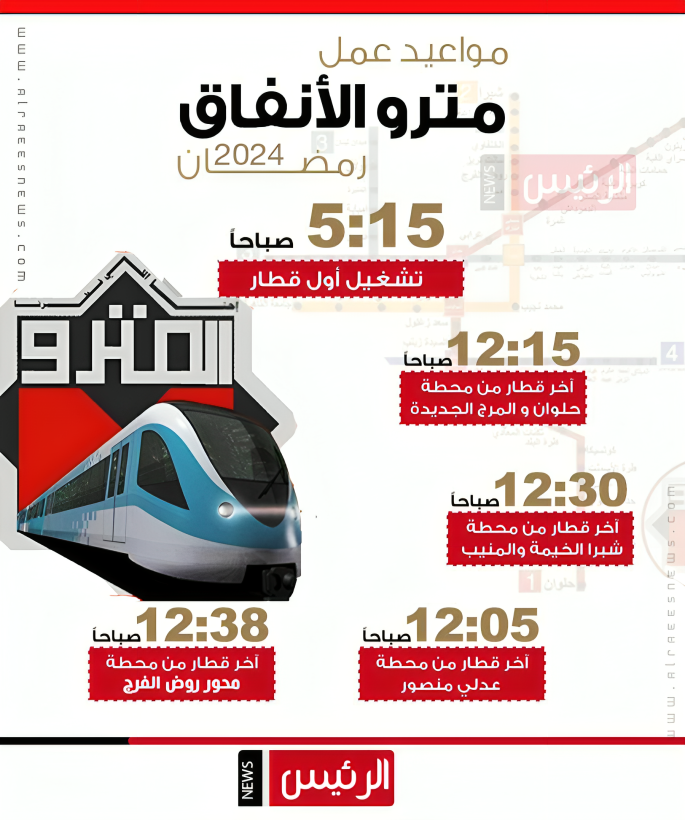 مع اقتراب شهر رمضان المبارك، تعدل وزارة النقل مواعيد تشغيل المترو وعدد من قطارات السكة الحديد، لتتناسب مع طبيعة العمل خلال الشهر الكريم، كما تعدل هيئة النقل العام، مواعيد بعض أتوبيسات النقل العام بالقاهرة لتناسب مواعيد الموظفين.