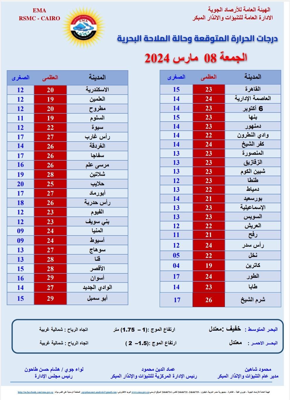 درجات الحرارة المتوقعة اليوم الجمعة 8 مارس 2024