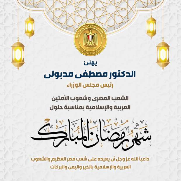 هنأ الدكتور مصطفى مدبولي رئيس مجلس الوزراء، الشعب المصري وشعوب الأمتين العربية والإسلامية بمناسبة حلول شهر رمضان المبارك، داعيا الله عز وجل أن يعيده على شعب مصر العظيم والشعوب العربية والإسلامية بالخير واليمن والبركات.