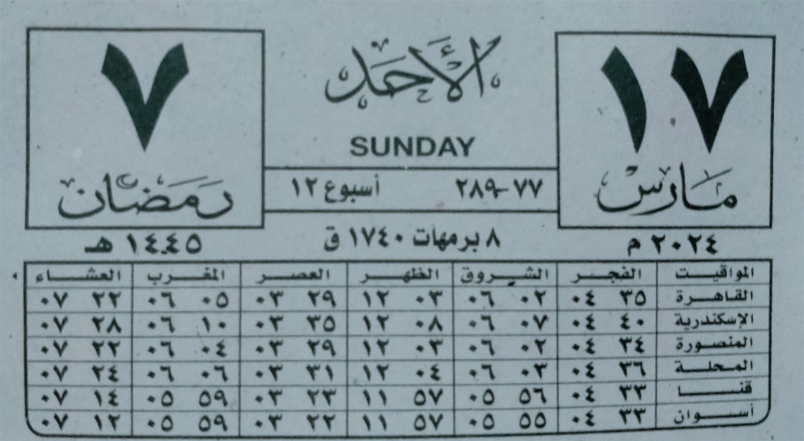 يوم الأحد 24 مارس يوافق 15 برمهات.