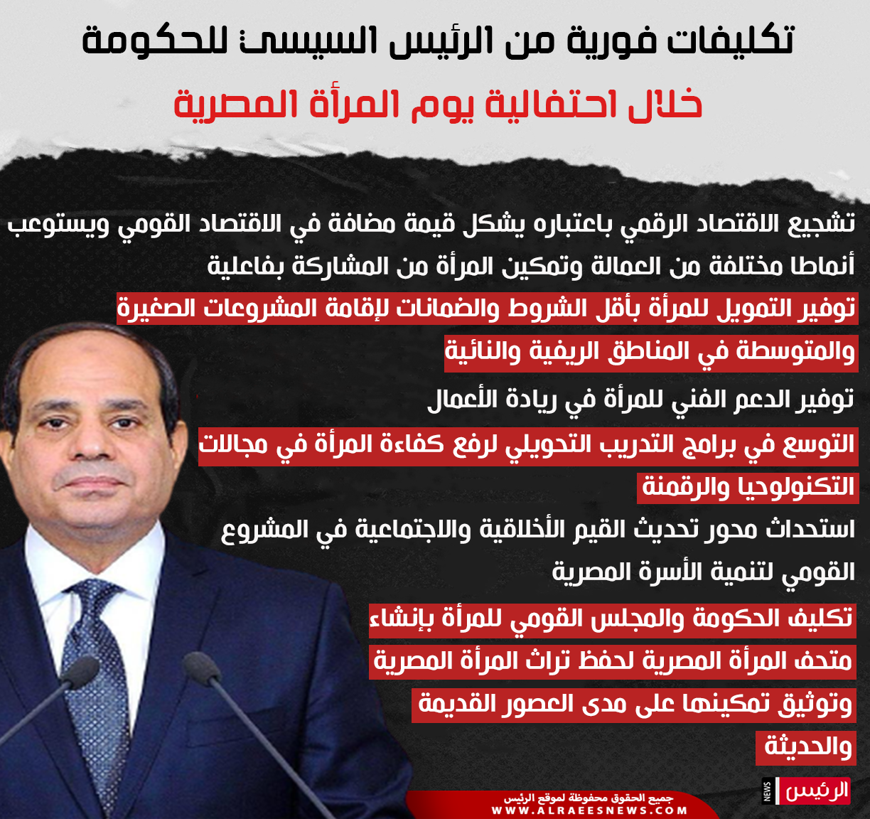 تكليفات فورية من الرئيس السيسي للحكومة خلال احتفالية يوم المرأة المصرية