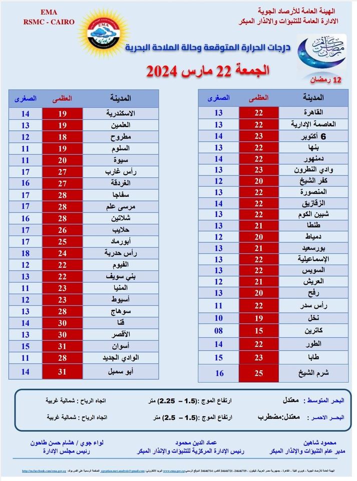 درجات الحرارة اليوم الجمعة 22 مارس 2024