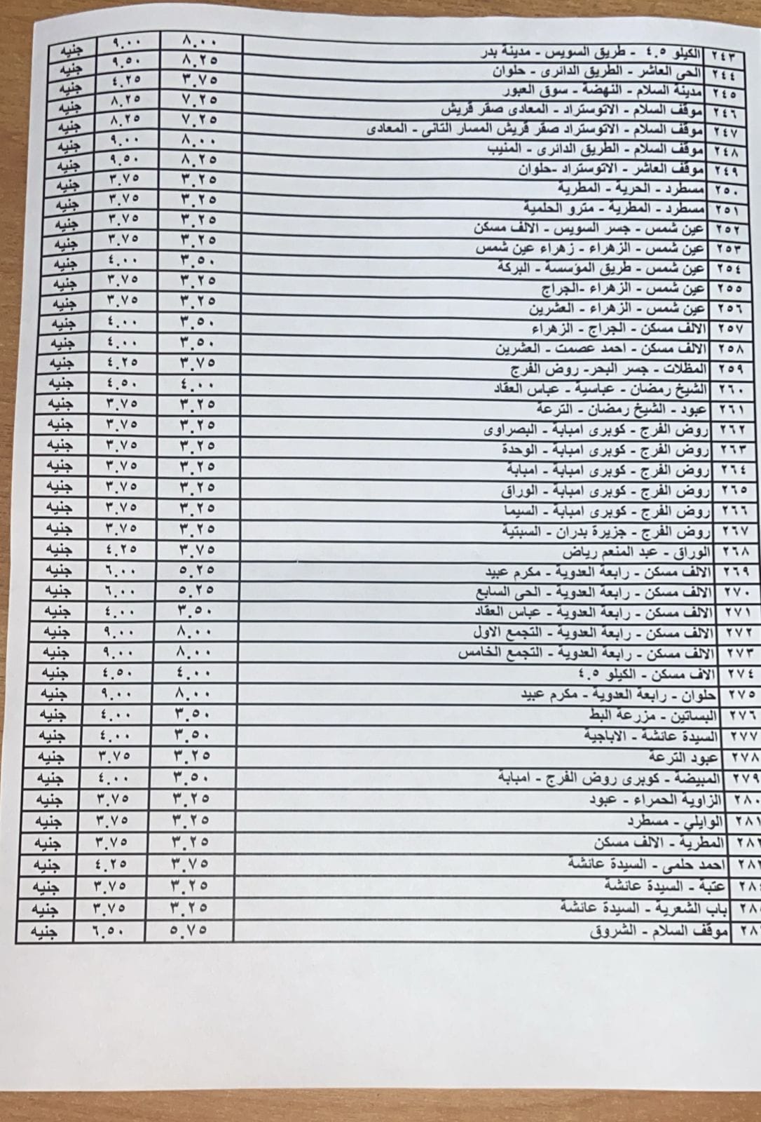رفع تعريفة الركوب للأتوبيسات العادية من ٦ جنيهات لتصبح ٧ جنيهات.