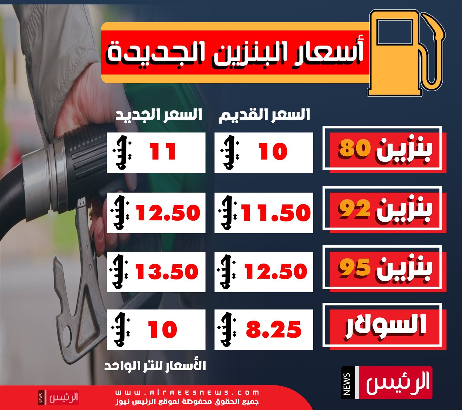 وجاءت أسعار البنزين والسولار الجديدة بعد الزيادة كالتالي: