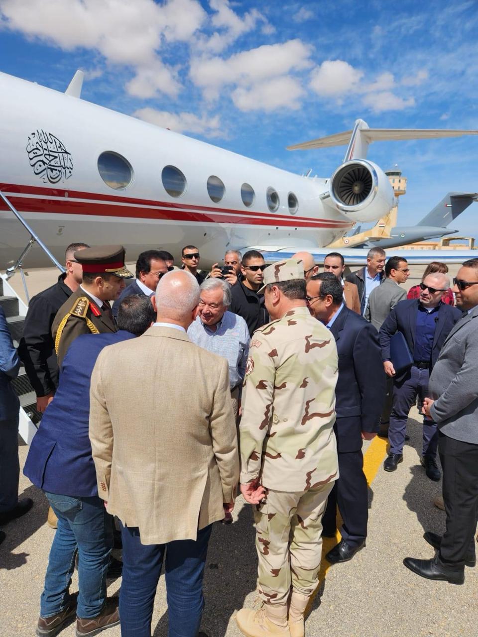 جاء ذلك خلال استقبال اللواء دكتور محمد عبد الفضيل شوشة، محافظ شمال سيناء، الأمين العام للأمم المتحدة أنطونيو جوتيريش، في مطار العريش الدولي، عقب وصوله على متن طائرة خاصة قادمة من القاهرة، برفقة الدكتور خالد عبد الغفار وزير الصحه والسكان، وذلك في حضور الدكتور خالد زايد، رئيس فرع الهلال الأحمر المصري بشمال سيناء، الدكتور طارق شوكة، وكيل وزارة الصحة بالمحافظة وعدد من القيادات الأمنية والتنفيذية.