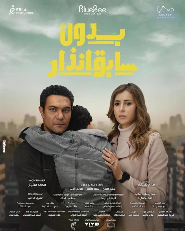 مسلسل "بدون سابق انذار" بطولة آسر ياسين، عائشة بن أحمد، أحمد خالد صالح، أحمد على ماهر، والعمل من تأليف ألمى كفارنة وإخراج هاني خليفة.