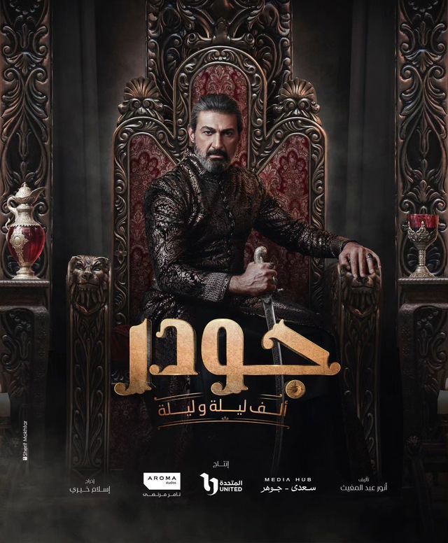 أقدم شخصية الملك شهريار بخلاف شخصية جودر ابن عمر المصري، وخلال الأحداث نتابع رحلة جودر ونجد انعكاس على شخصية شهريار وتبدأ أخلاقه وطباعه تتغير ويتأثر بقصته كثيرا، وانتهيت من تصوير شخصية شهريار كاملة أولا، ثم قدمت شخصية جودر وغيرت شكلي ولون شعري وبدأت أعمل على مراحل في نفسية جودر، خاصة وأن جودر نراه في أكثر من مرحلة عمرية وهو ما أخذ مني مجهود كبير جدا في التحضير للشخصية لأن كل شخصية أنا أتعامل معها بمنتهى الجدية وأدرسها جيدا من حيث البعد الاجتماعي والشكلي والنفسي، فالبعد النفسي له مشاعره واحاسيسه وانفعالاته والسمات المميزة في شخصيته وهكذا.