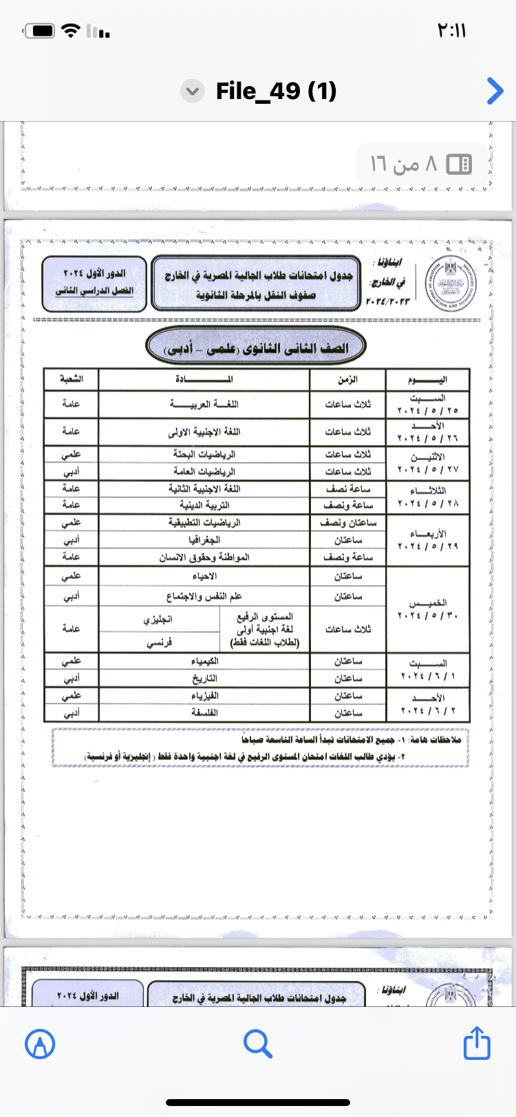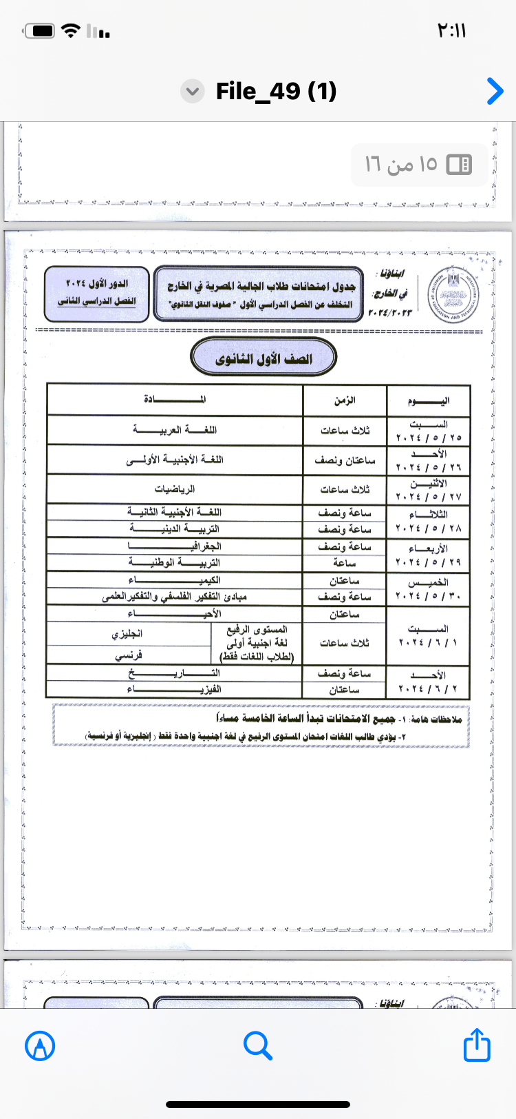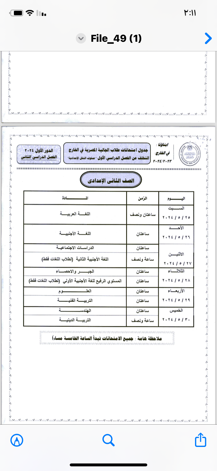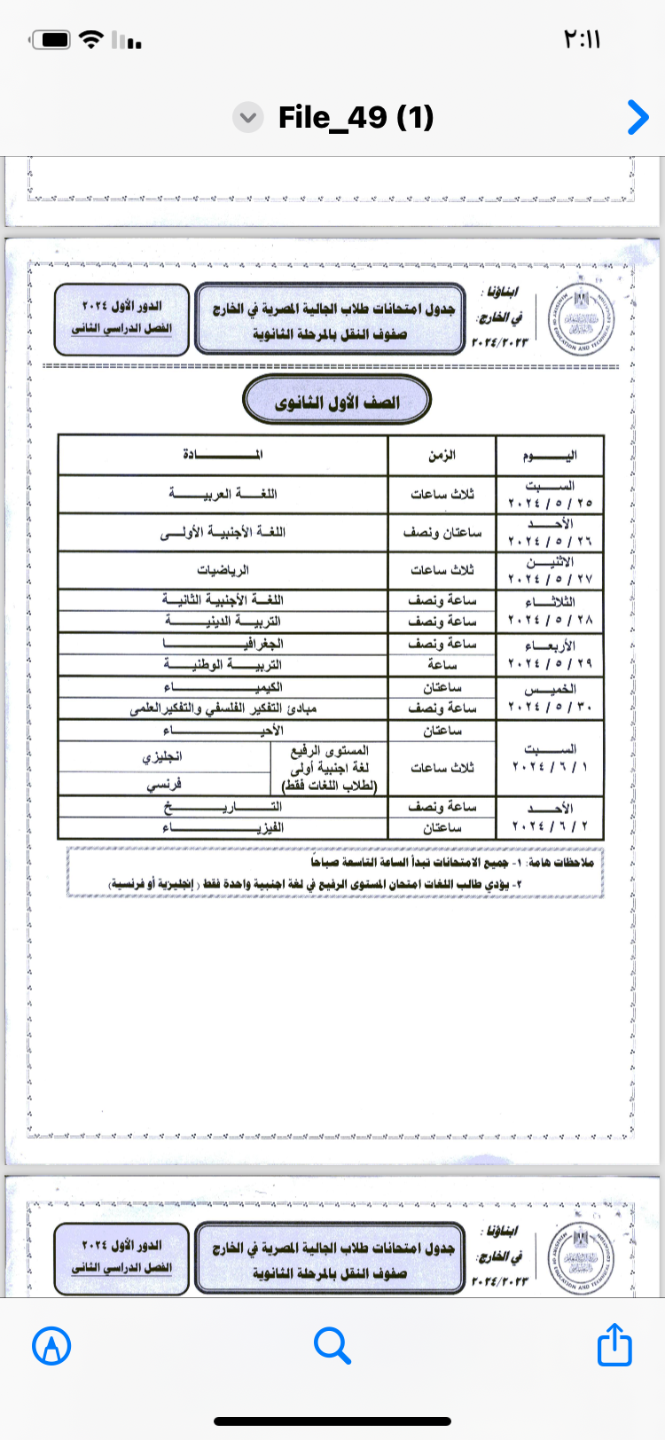 جدول امتحانات الطلبة المصريين في الخارج للفصل الدراسي الثاني 2024