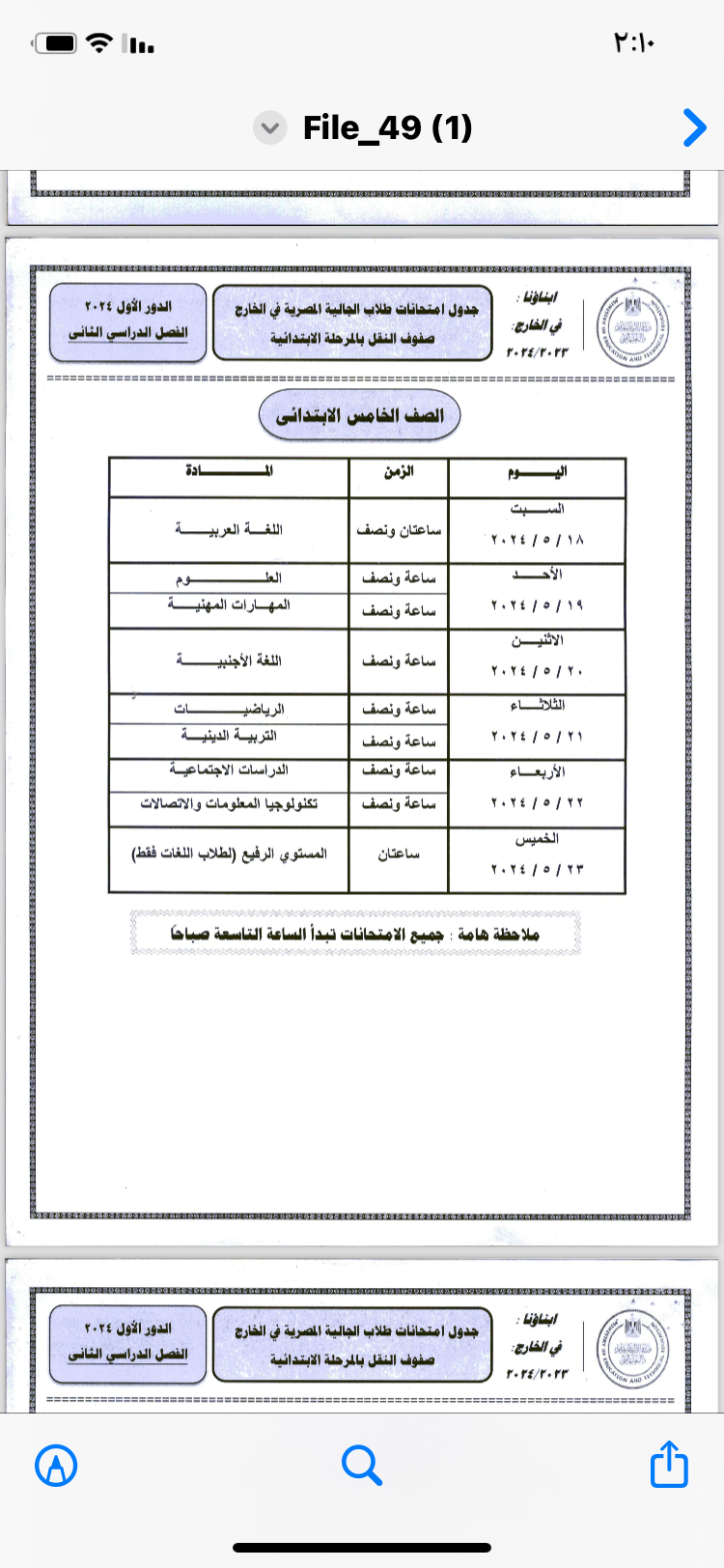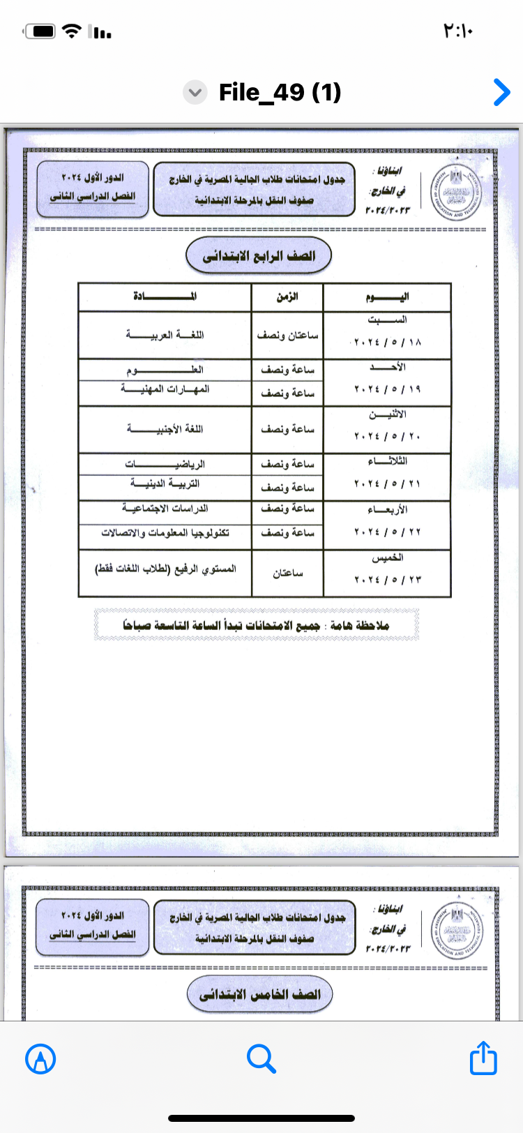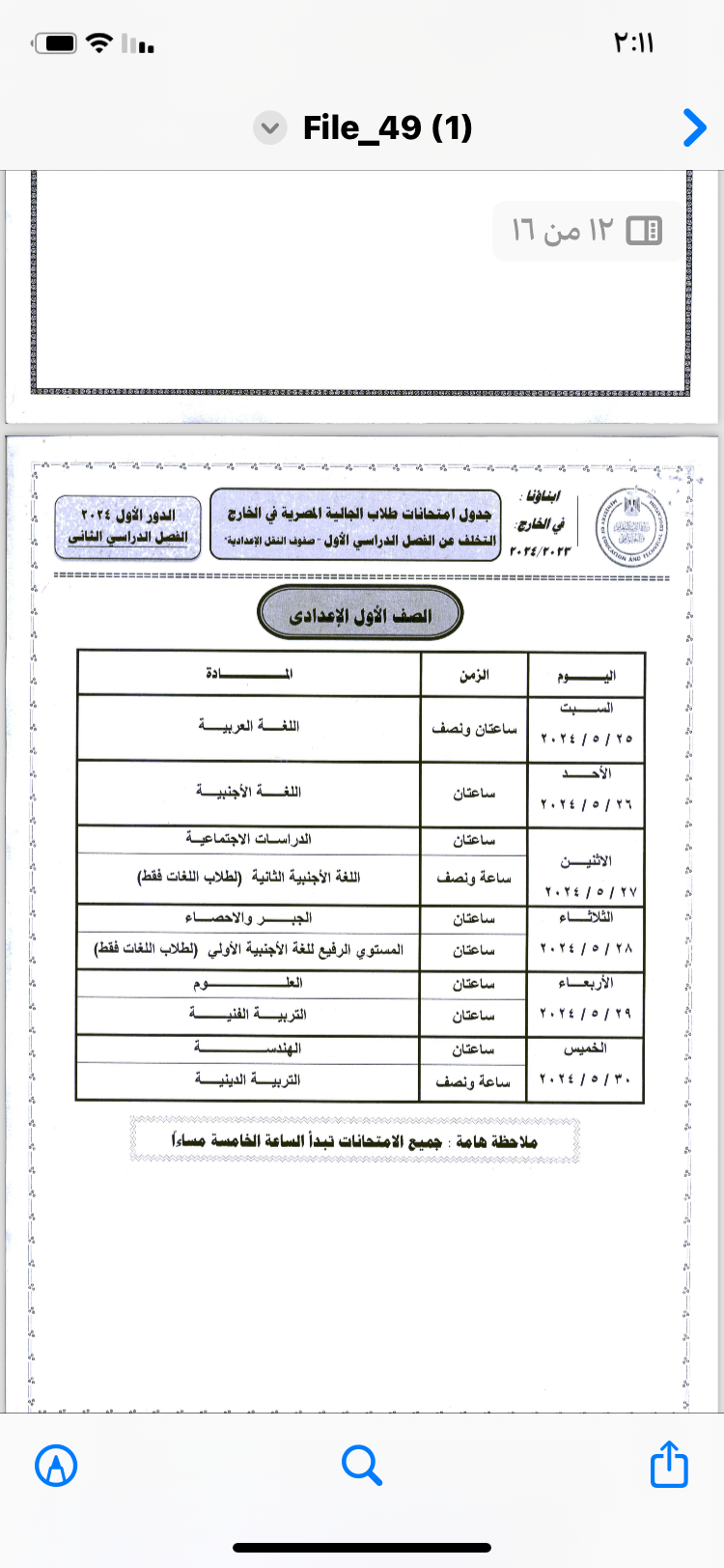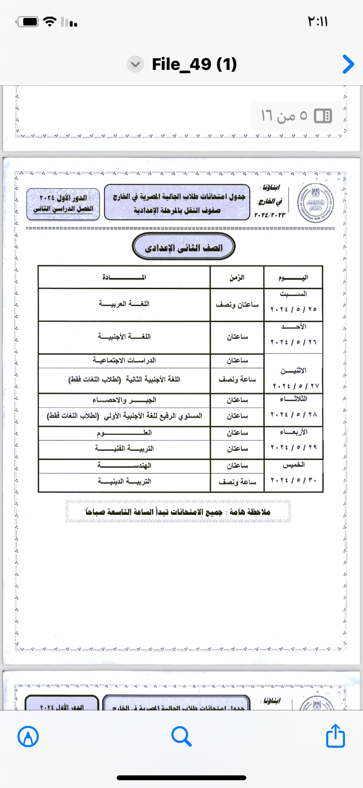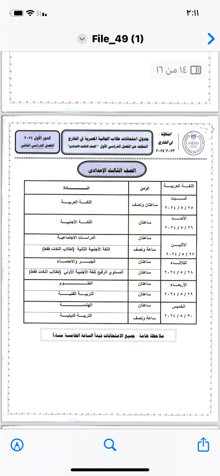 جدول امتحانات الطلبة المصريين في الخارج للفصل الدراسي الثاني 2024