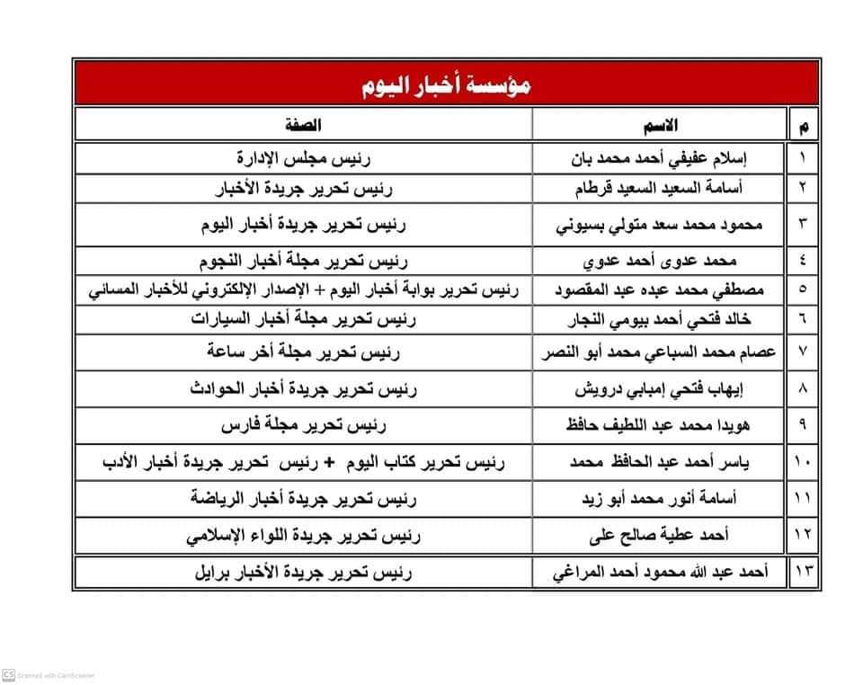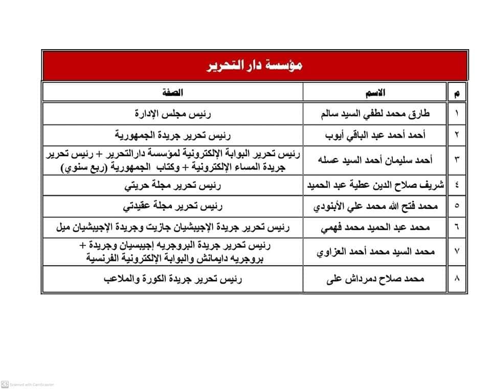 وقد شملت حركة التغييرات الصحفية الأسماء الآتية: