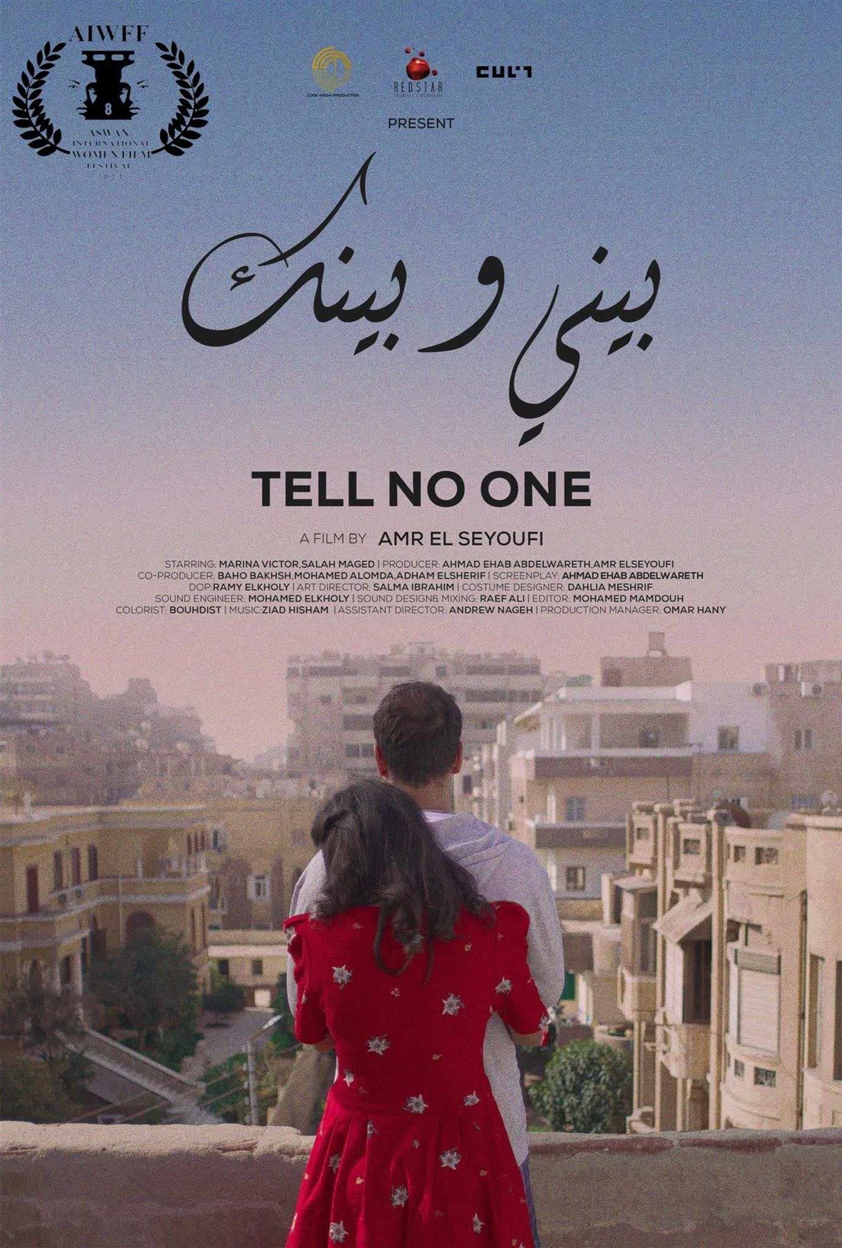 فيلم "بيني وبينك- Tell No One" روائي قصير، تدور أحداثه حول الشابة الحالمة "نور" التي تقرر أن تستغل غياب والدها عن المنزل لتبحث عن الحب خلال موقع جرئ للدردشة.