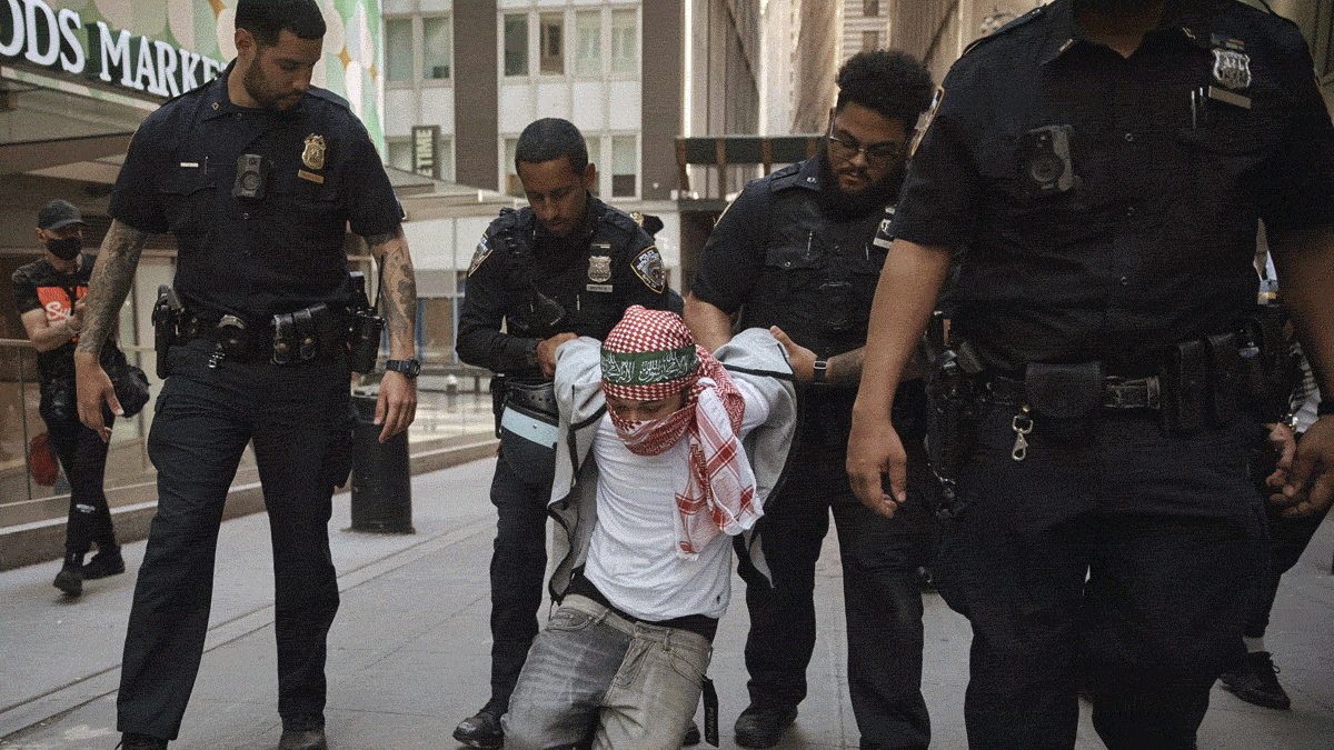 ذكر تقرير لشبكة سي بي إس نيوز، أن ضباط الشرطة في عدد كبير من الولايات والمدن الأمريكية على الدراجات النارية تبعوا المتظاهرين في الشوارع وأعلى الجسور و"بدأوا في إجراء اعتقالات بمجرد اندلاع موجة من الاحتجاجات المؤيدة للقضية الفلسطينية.