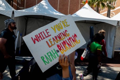 في يوم الضرائب، احتج طلاب أمريكيون بجامعة جنوب كاليفورنيا ضد دور الولايات المتحدة في الحرب الإسرائيلية على غزة، وجاءت المظاهرة وسط تصاعد التوترات في الشرق الأوسط، وفقًا لصحيفة تروجان دايلي.