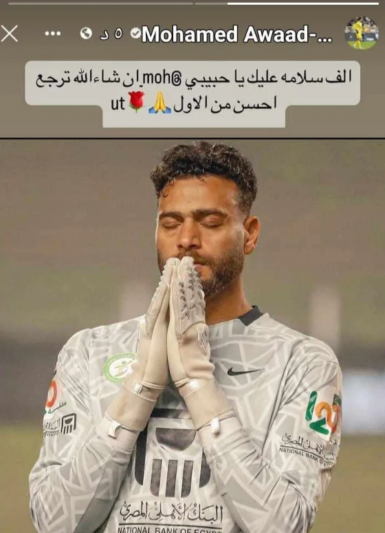 حرص محمد عواد حارس مرمى الفريق الأول لكرة القدم بنادى الزمالك على دعم زميله محمد ابو جـبل حارس مرمى نادى البنك الاهلى حيث كتب عبر ستورى صفحته الشخصية على موقع التواصل الاجتماعي أنستجرام قائلًا: