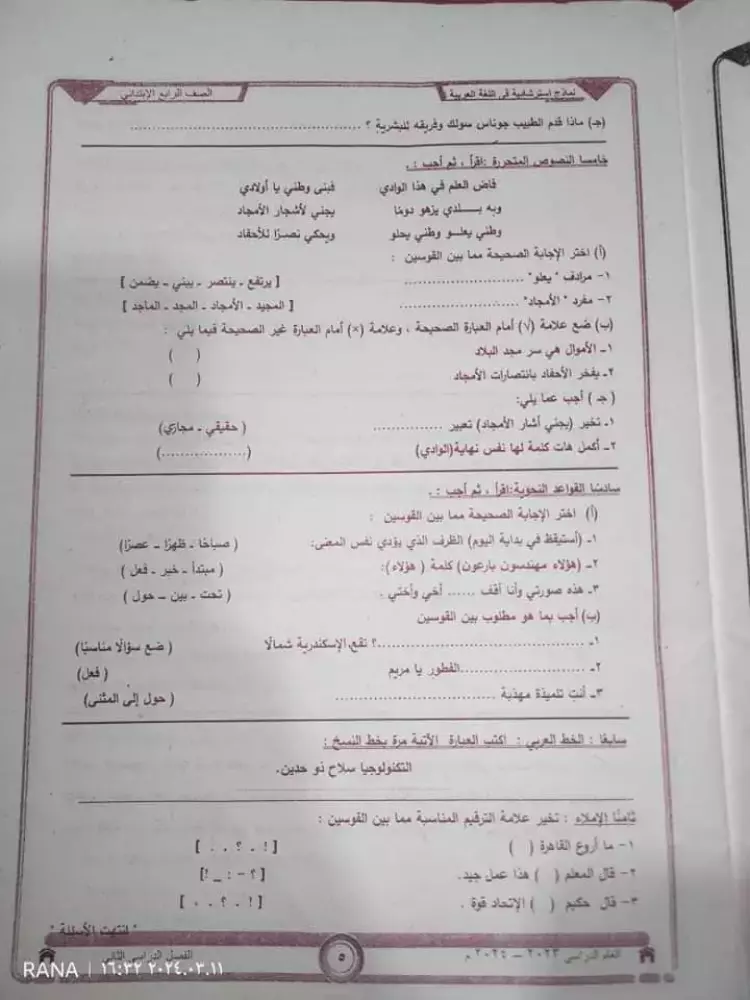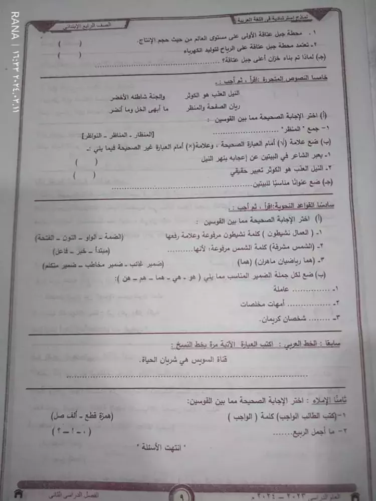 وهناك العديد من النماذج الاسترشادية لامتحانات عربي لطلاب رابعة ابتدائي سواء الملتحقين بالمدارس العام أو الأزهرية، ومن بين الأسئلة الموضوعة: