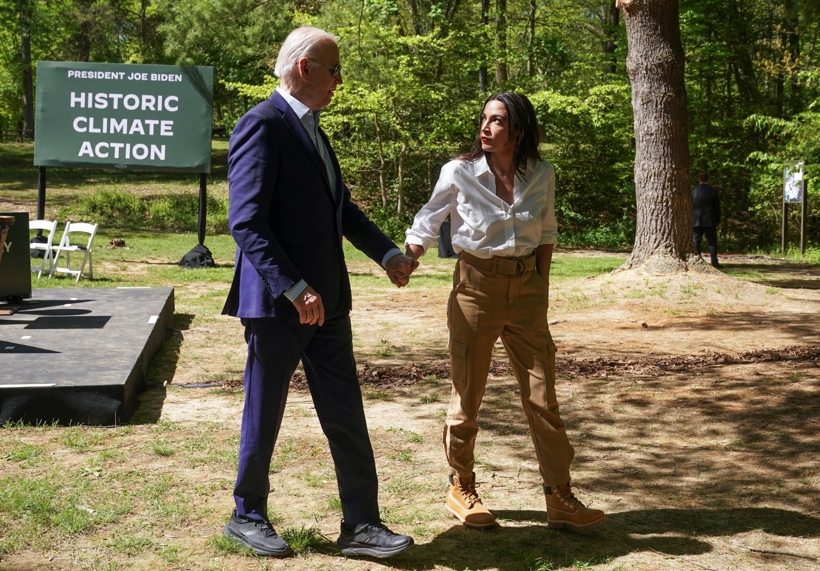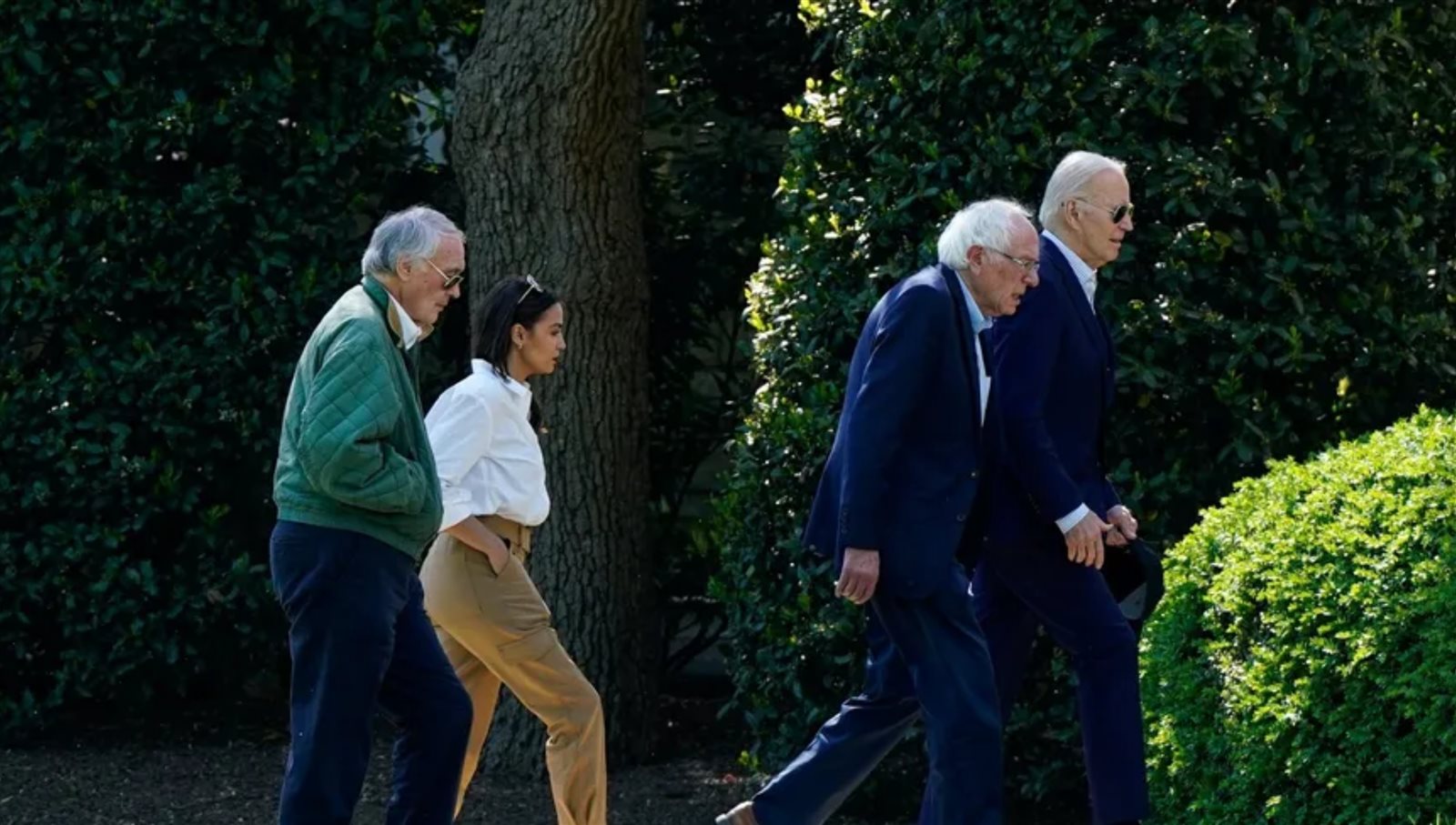 وشوهد بايدن وهو يدخل المكتب البيضاوي مع عضوة مجلس النواب ألكساندريا أوكاسيو كورتيز، وكذلك عضوي مجلس الشيوخ بيرني ساندرز وإد ماركي بعد عودتهم من فعالية تخص (يوم الأرض) حضروها جميعًا في فرجينيا.