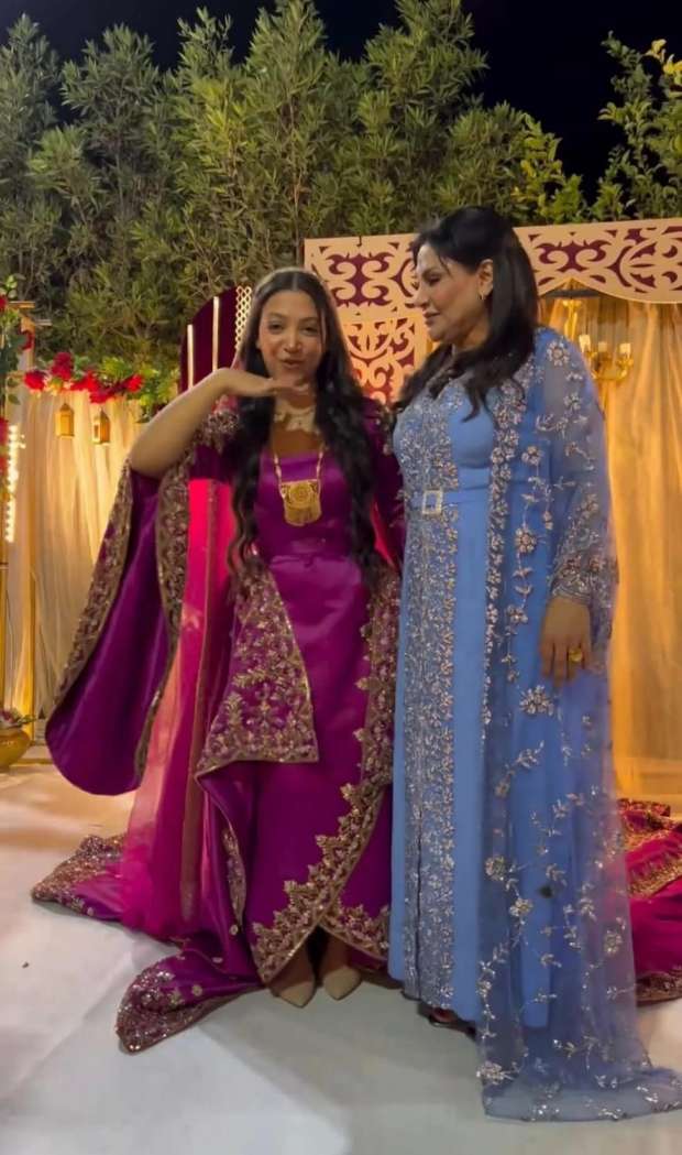 وظهرت "بدرية" رفقة ابنتها "سلمى" واختارت "سلمى" الزي الهندي للاحتفال بحنتها وسط تأثر "بدرية" بزواج ابنتها.