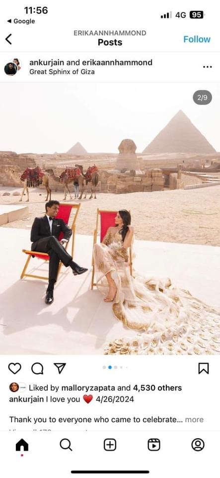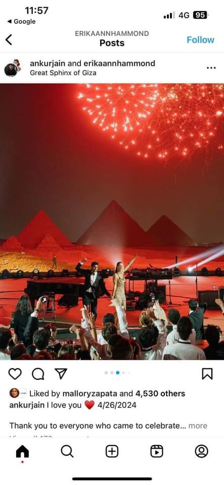 اختار الملياردير الأمريكي من أصول هندية أنكور جاين، مصر؛ ليحتفل بحفل زفافه، وحدد العديد من الأماكن له منها الأهرامات.