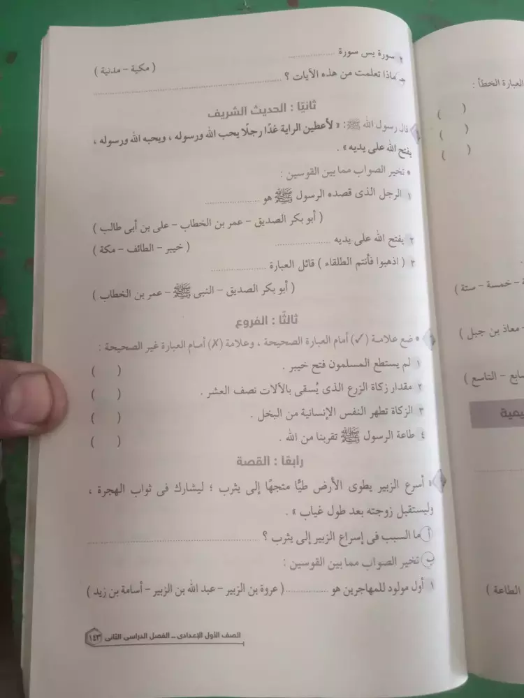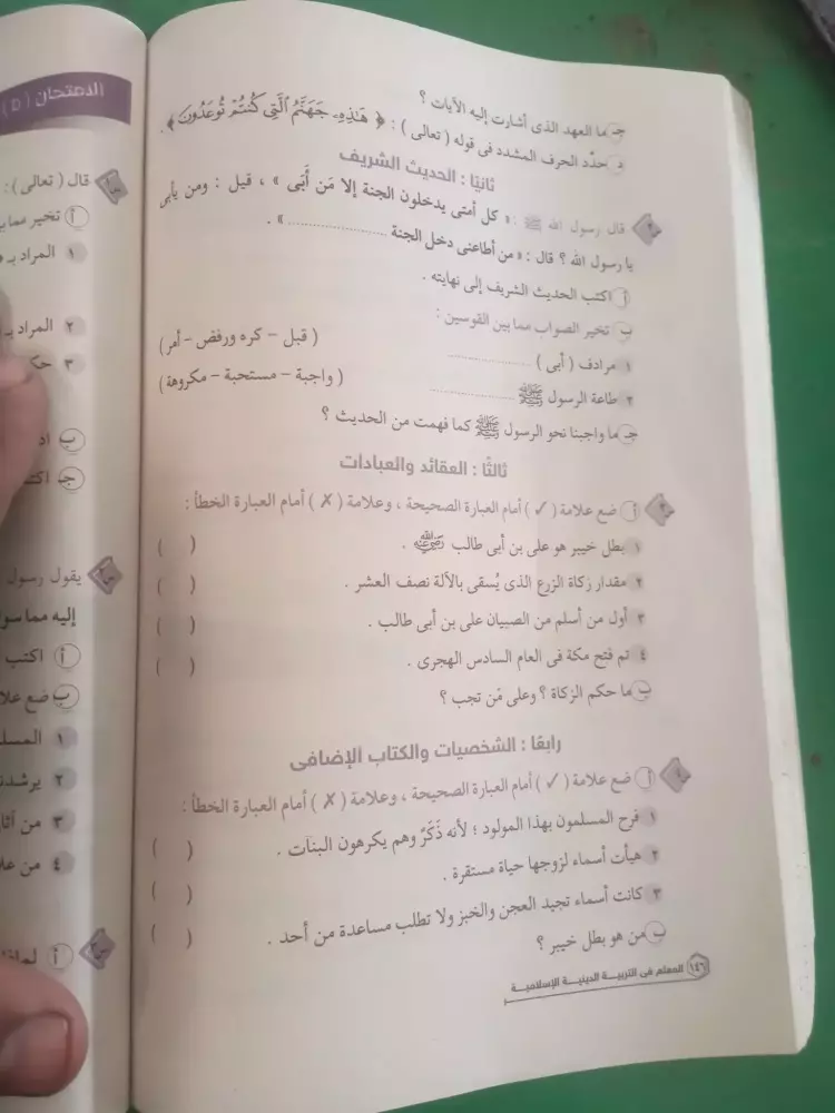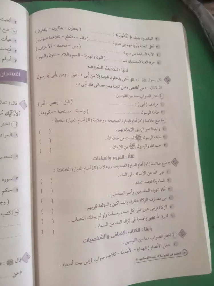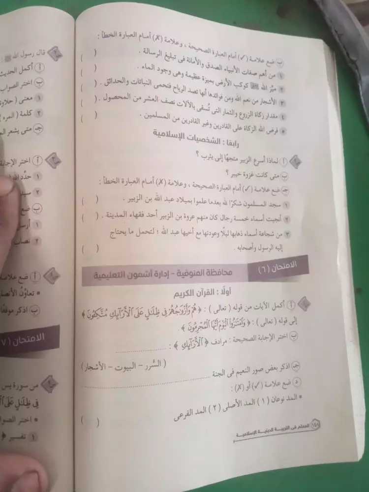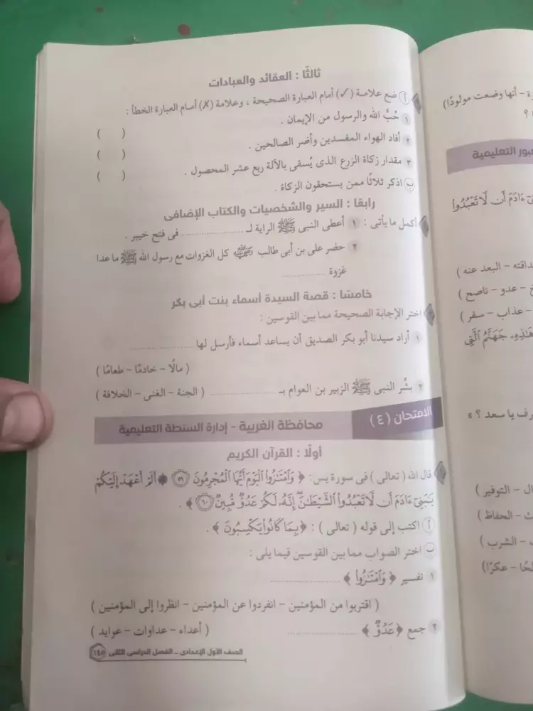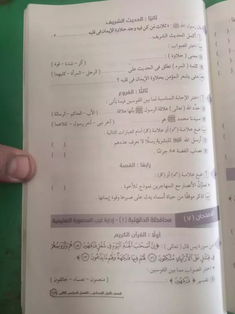 نماذج امتحانات دين للصف الاول الاعدادي الترم الثاني 2024