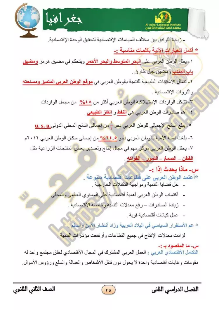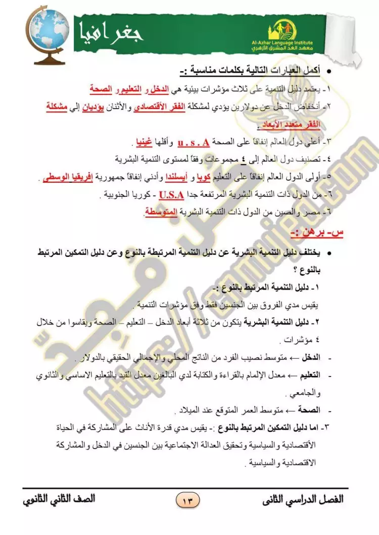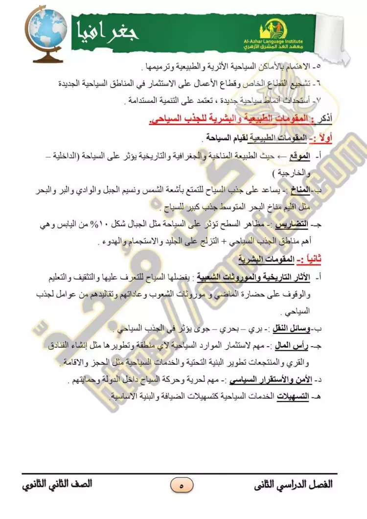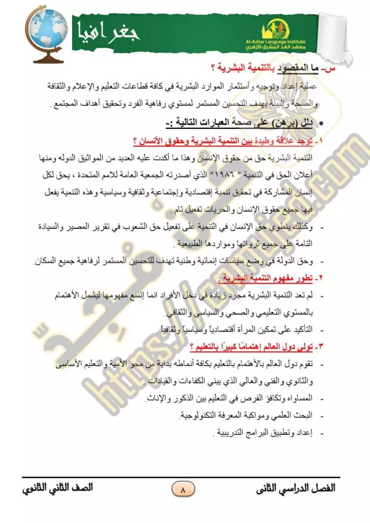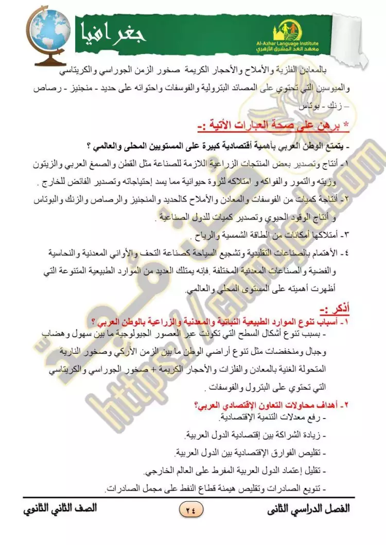 مراجعة ليلة الامتحان جغرافيا للصف الثاني الثانوي الترم الثاني 2024