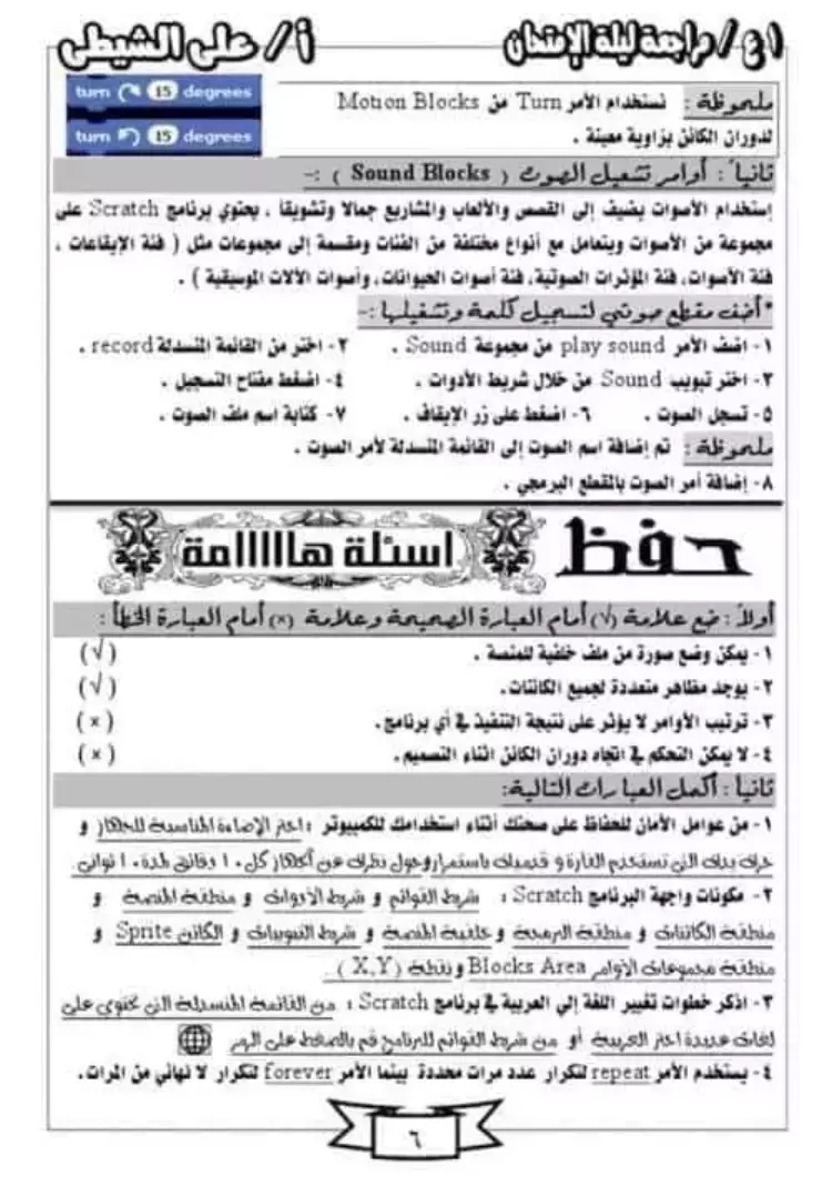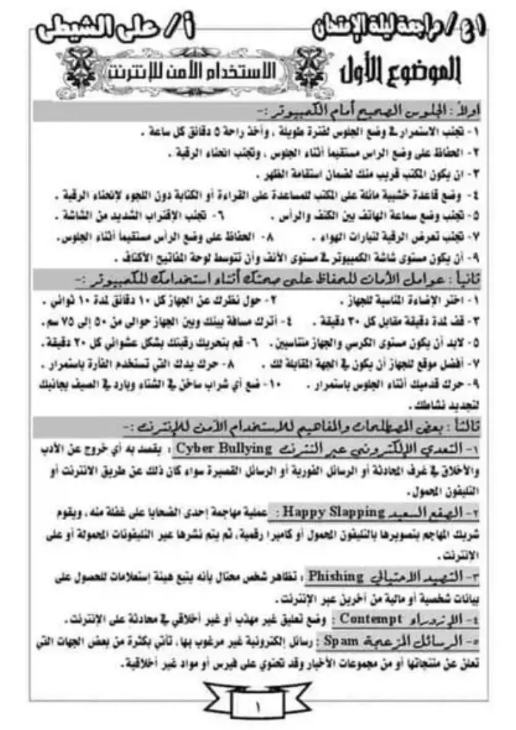 ننشر لكم مراجعة ليلة الامتحان شاملة في مقرر الحاسب الآلى لطلاب الصف الأول الإعدادي الفصل الدراسي الثاني.