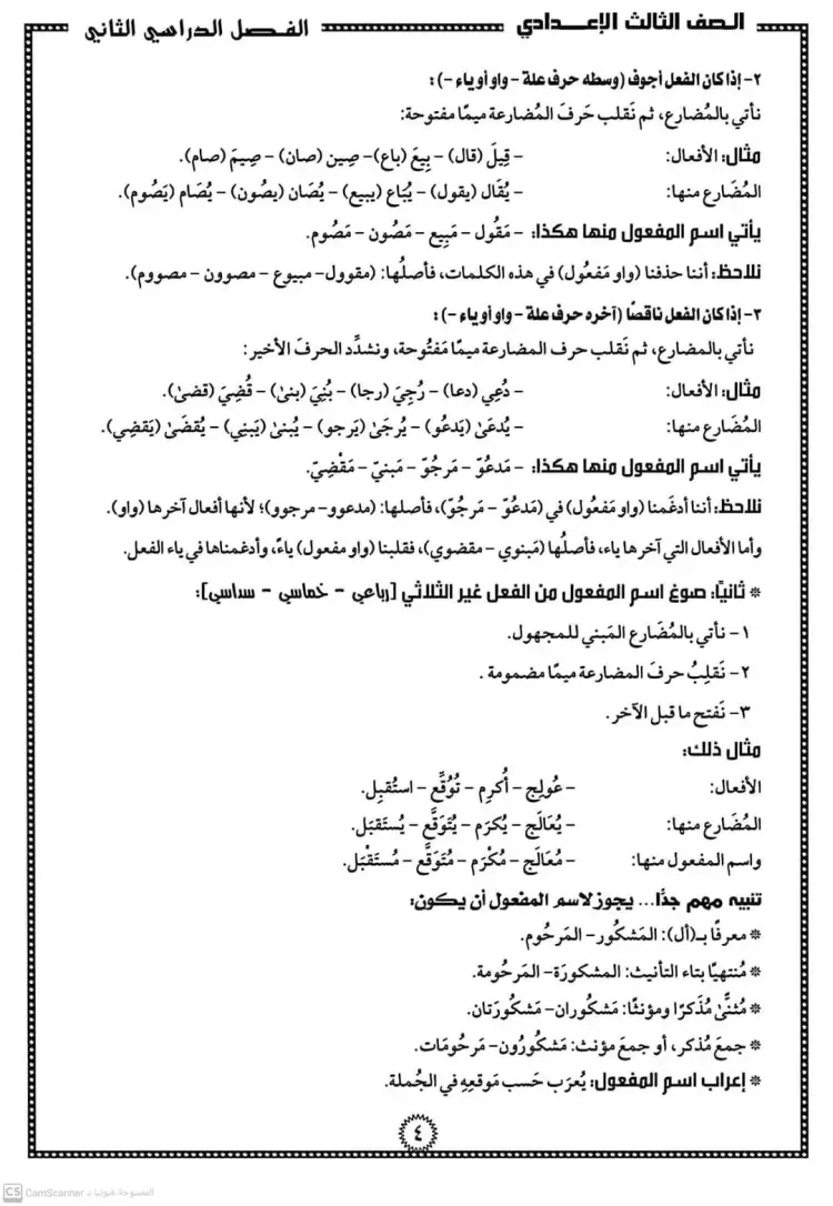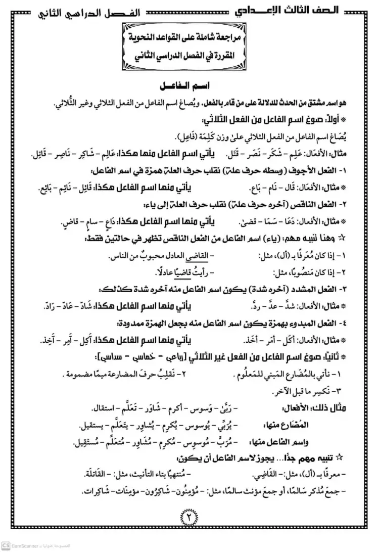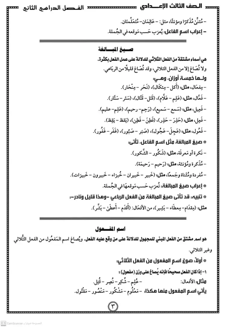 وجاء في مراجعة النحو للشهادة الإعدادية على النحو التالي: