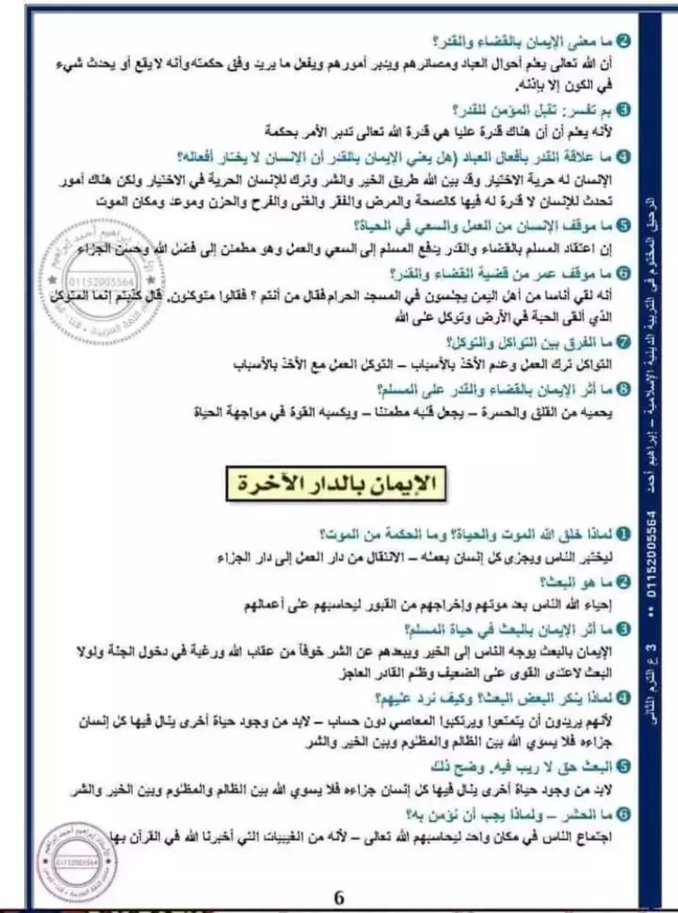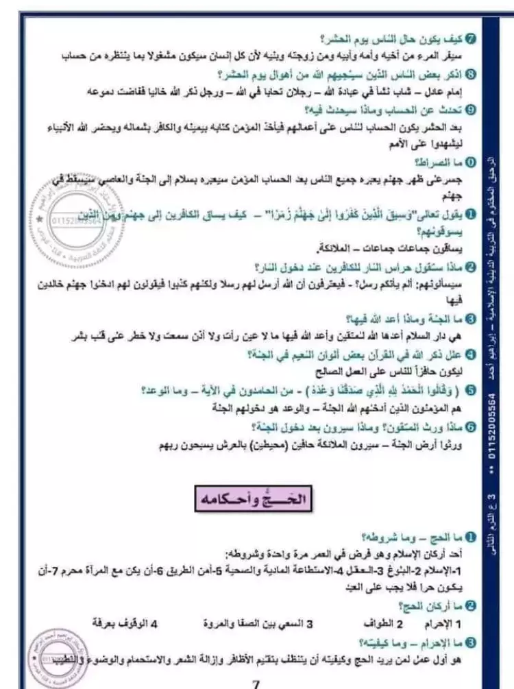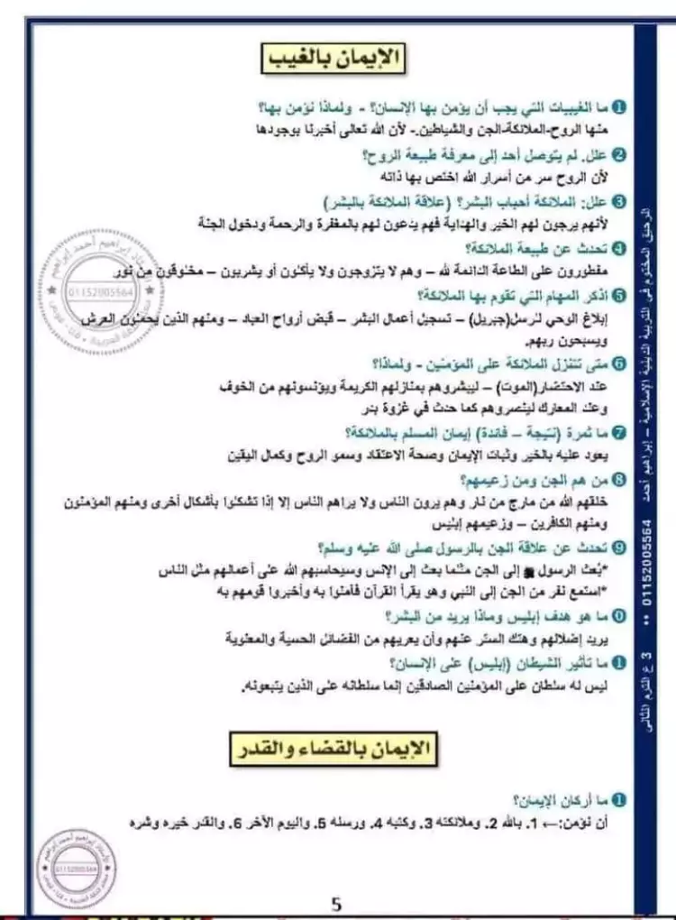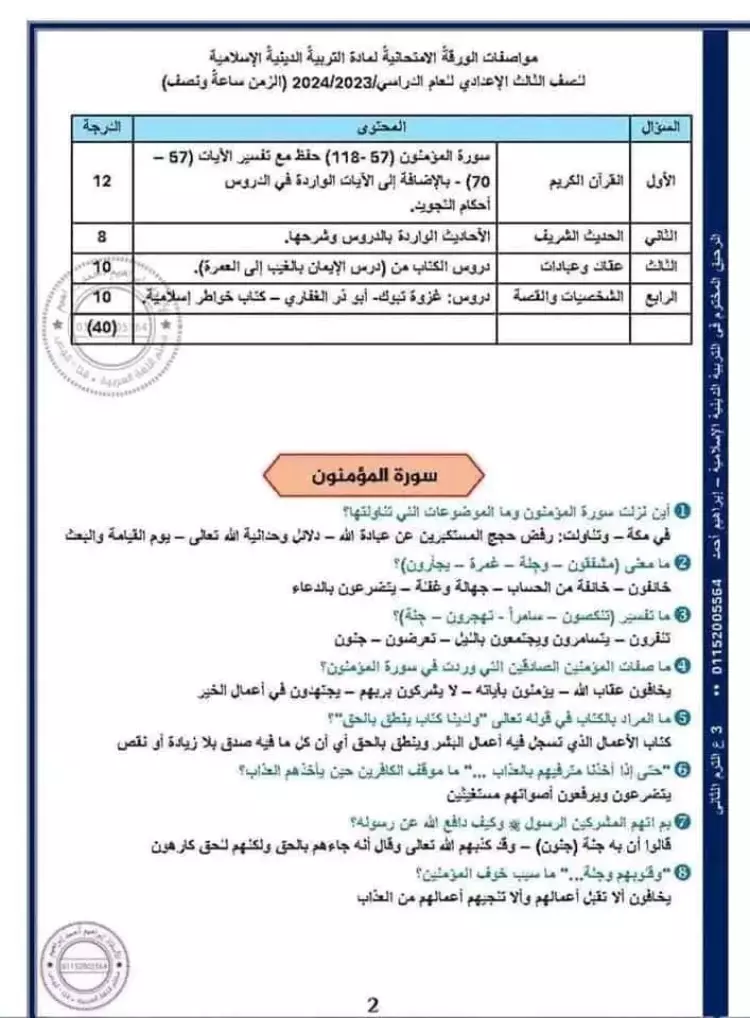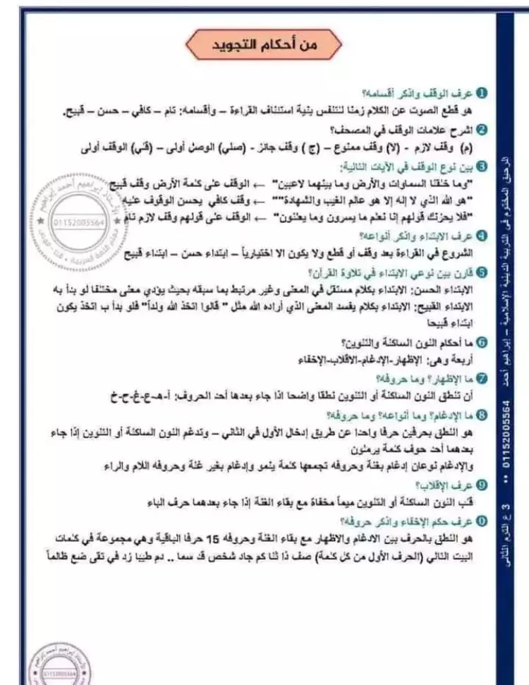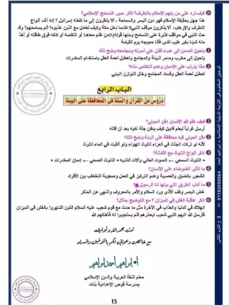 مراجعة ليلة الامتحان تربية دينية للصف الثالث الاعدادي الترم الثاني 2024