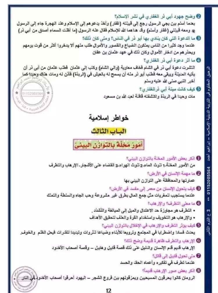 وتعتبر ملزمة التربية الدينية مراجعة شاملة لمنهج الصف الثالث الإعدادي الترم الثاني كاملا، في صورة سؤال وجواب، تيسيرًا على الطلاب في معرفة صور الأسئلة المتوقعة.
