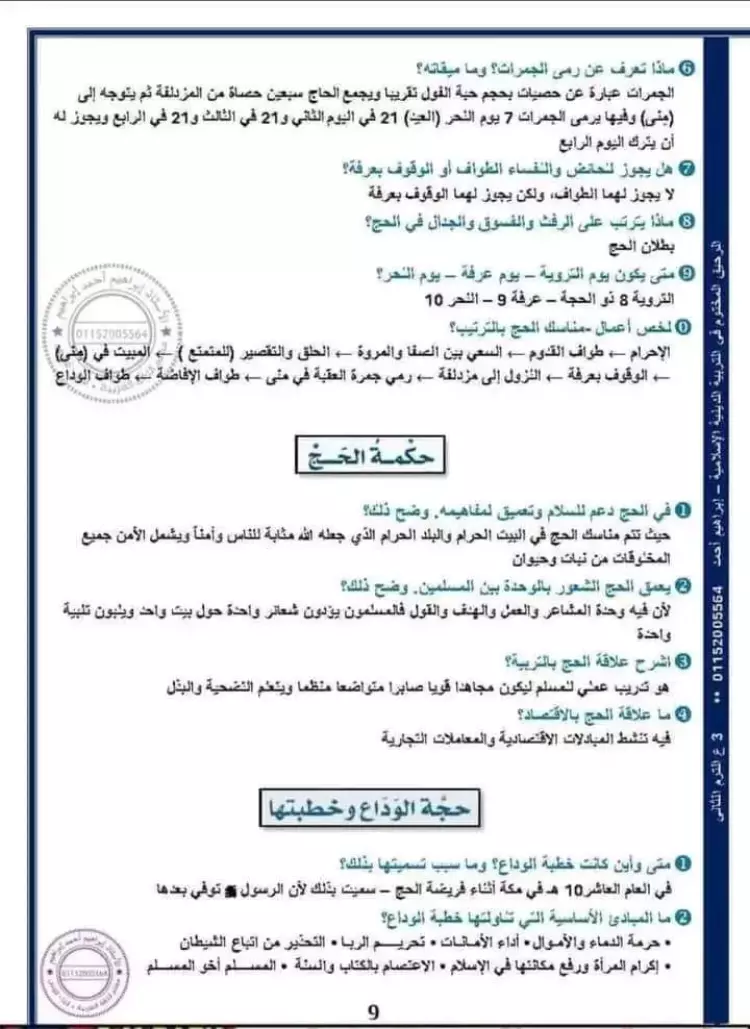 ننشر لكم ملزمة شاملة منهج التربية الدينية الإسلامية لطلاب الصف الثالث الإعدادي الفصل الدراسي الثاني.