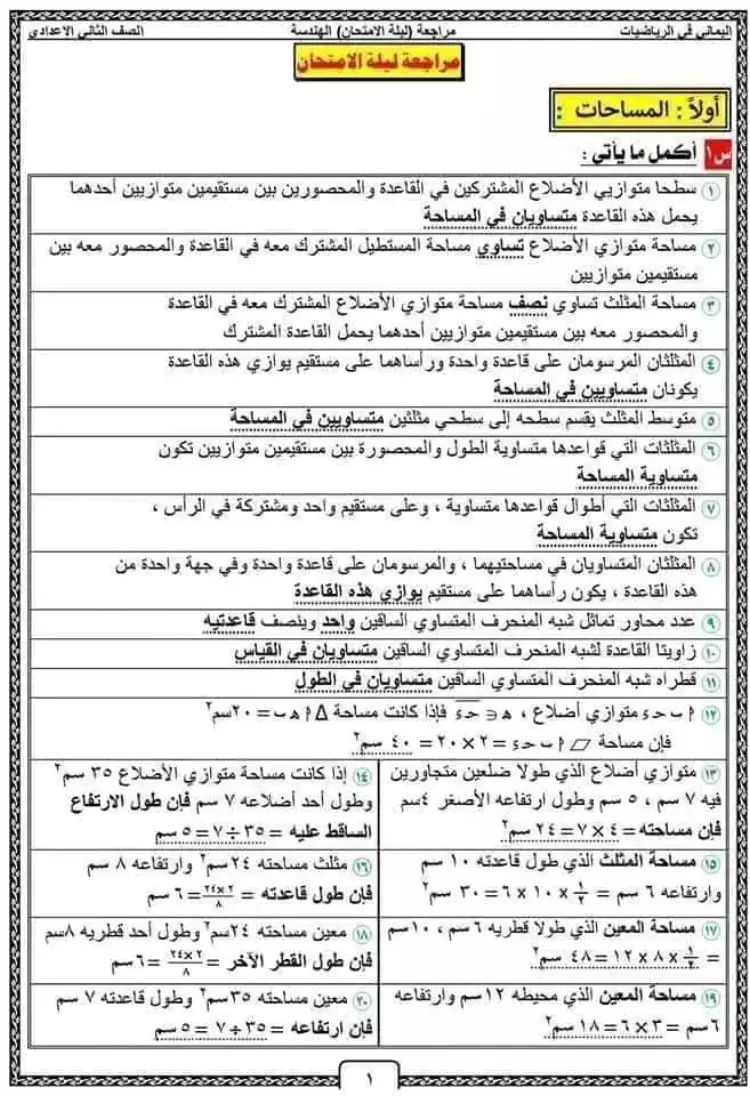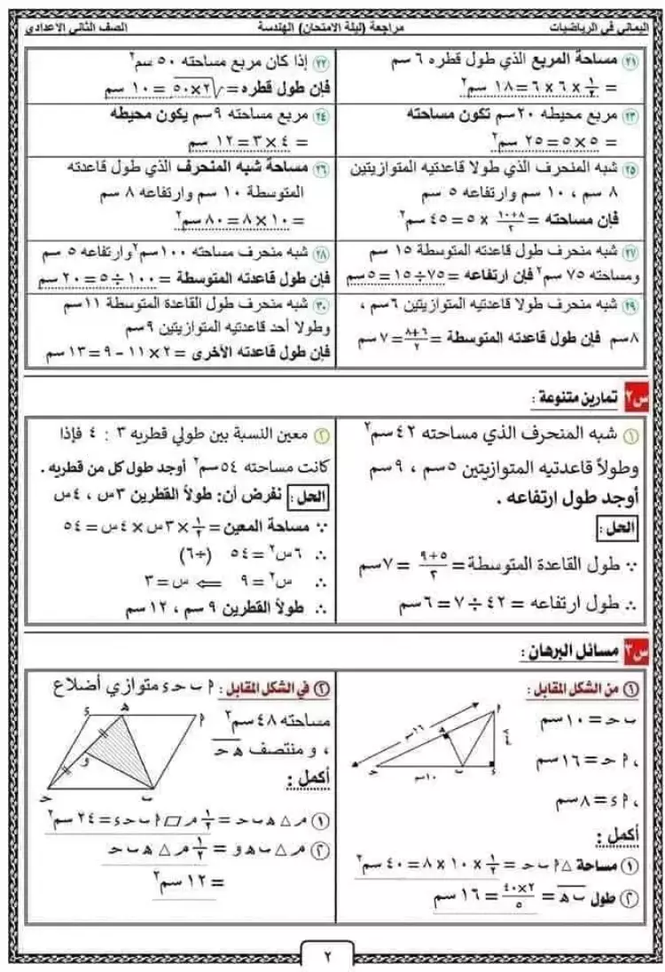 وفي هذا السياق، يمكن الاطلاع على مراجعة ليلة الامتحان الهندسة للصف الثاني الإعدادي الترم الثاني 2024، وذلك من خلال الصور التالية: