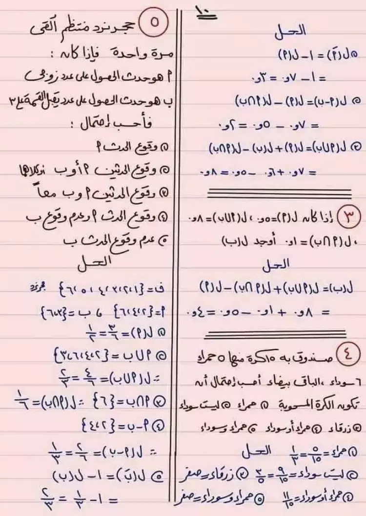 أحسب احتمال أن تكون الكرة المسحوبة: