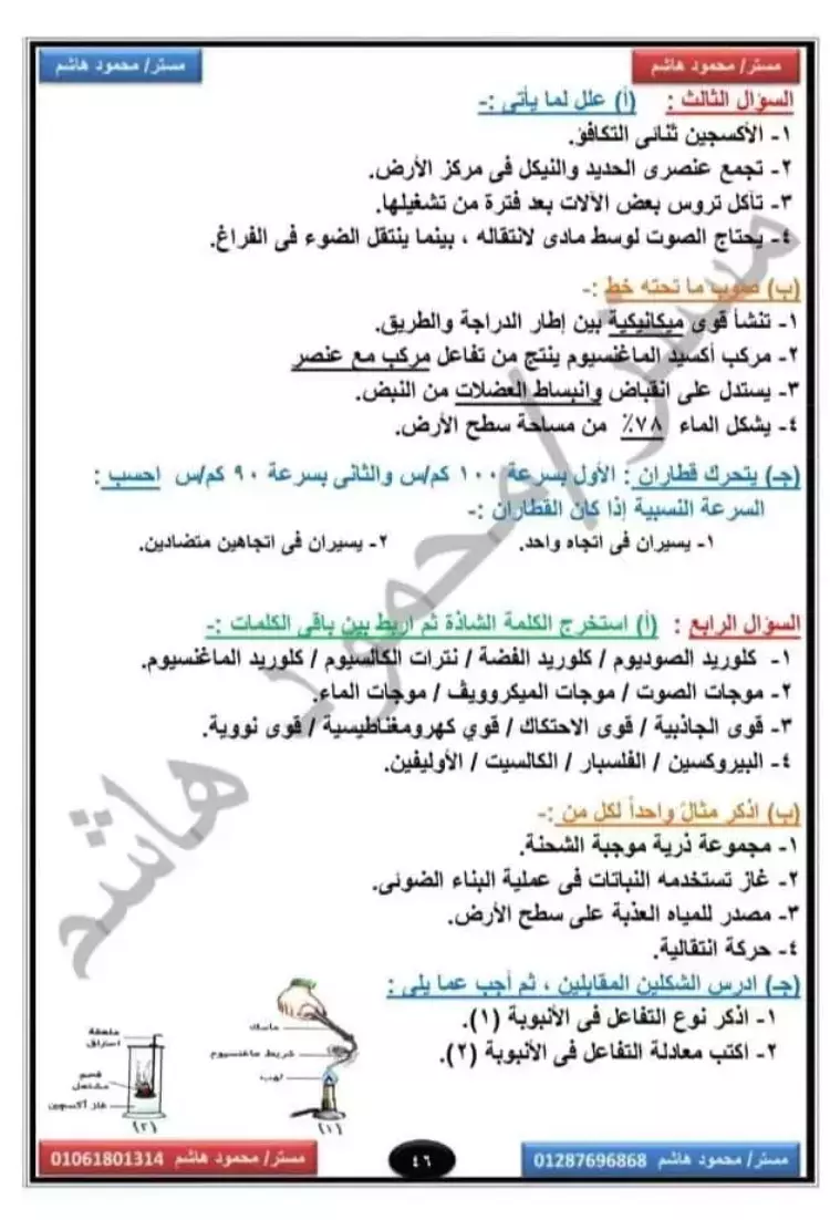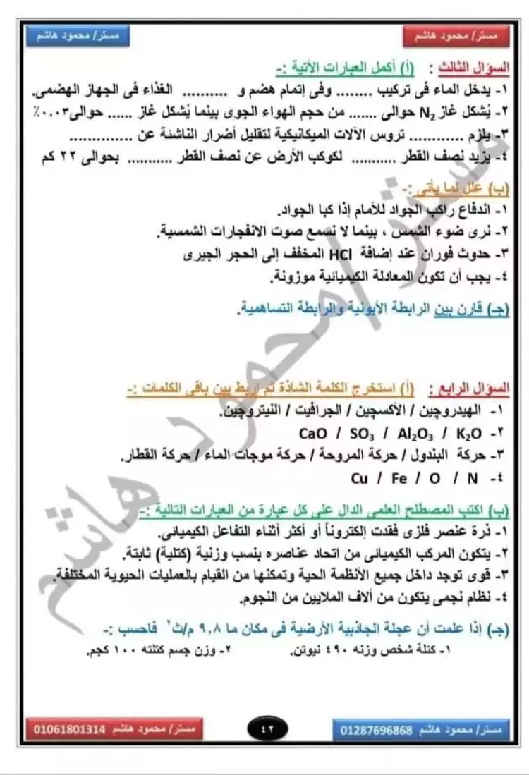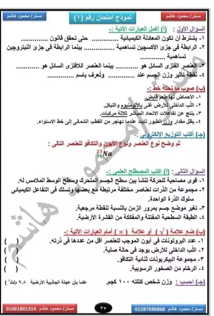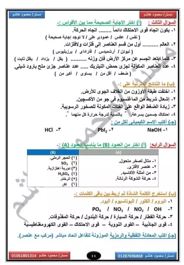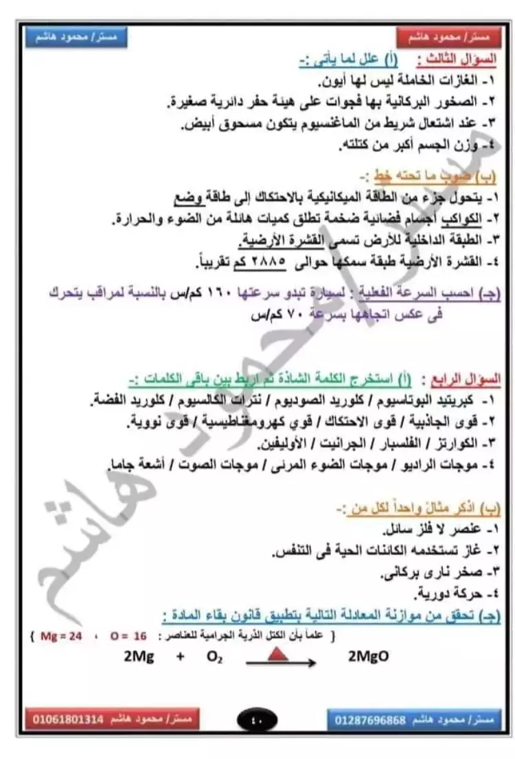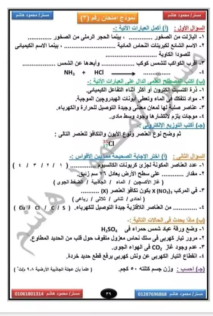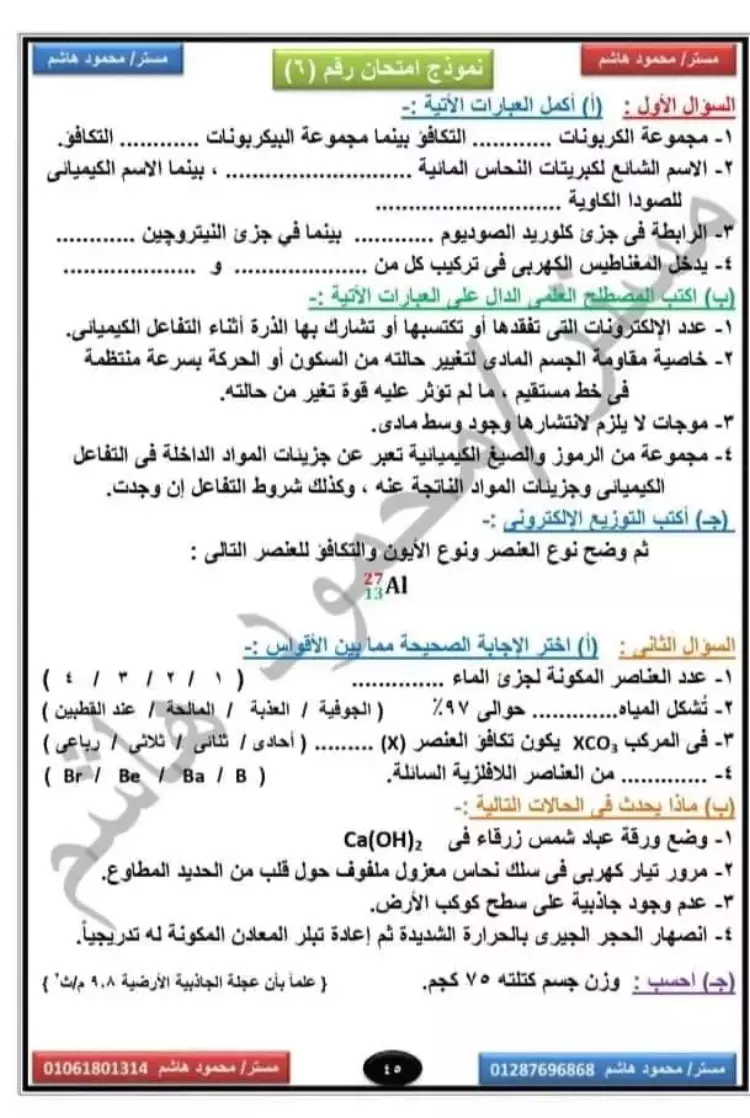 وفي هذا الصدد، تأتي النماذج المرفقة بالموضوع على العديد من صور الأسئلة المتوقعة منها ما يلي: