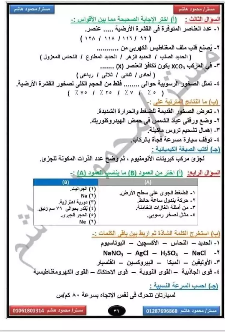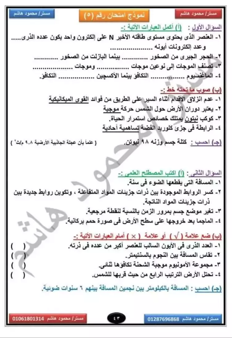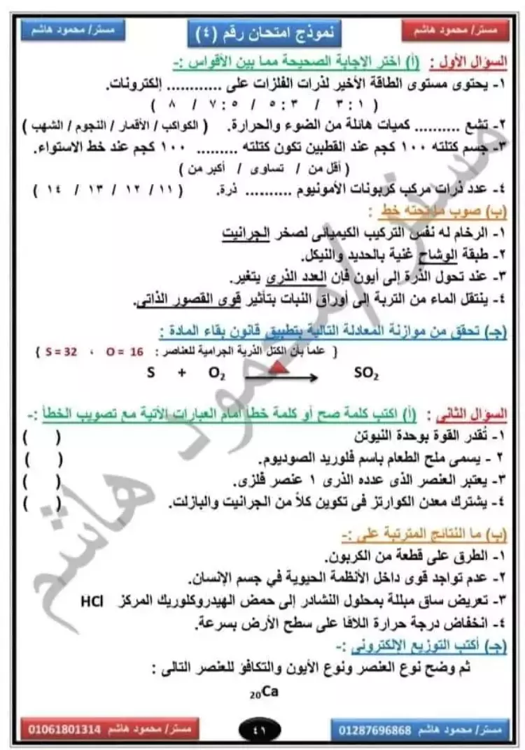 وفي هذا الإطار، نستعرض لكم نماذج امتحانات الوزارة علوم للصف الأول الإعدادي الترم الثاني 2024، وذلك من خلال الصور التالية: