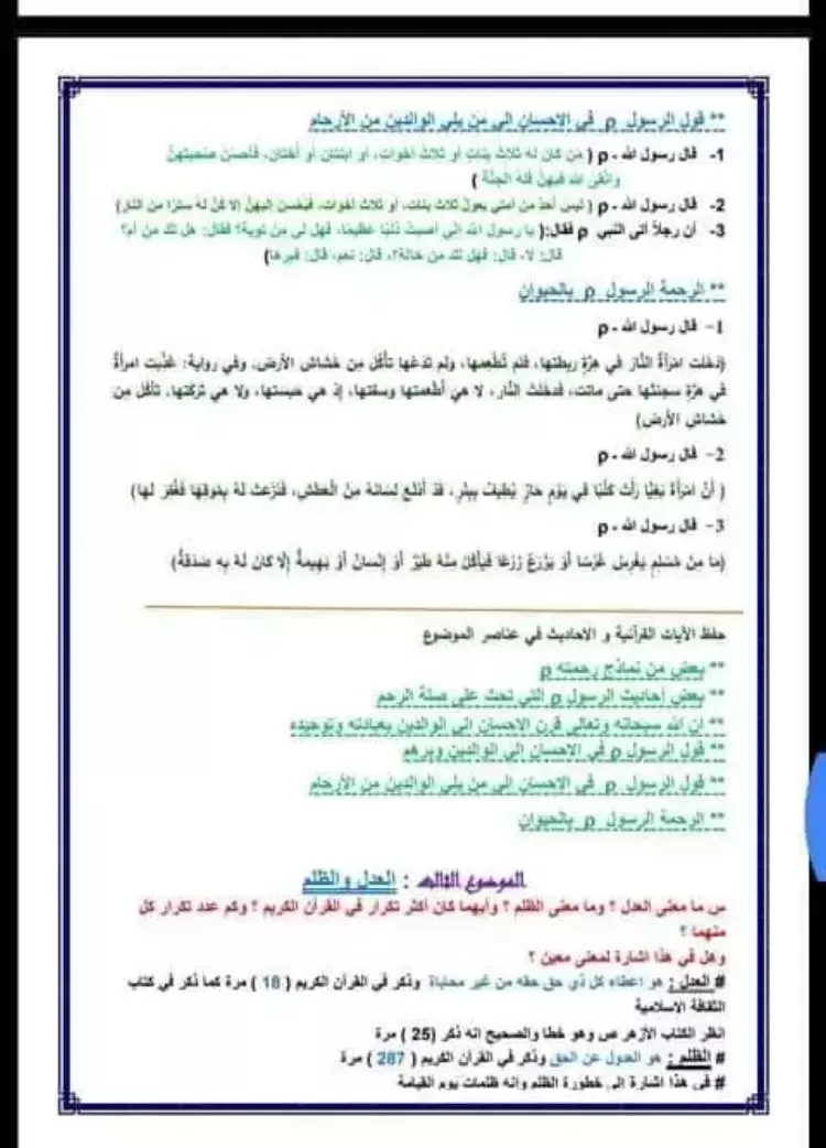 مراجعة الثقافة الإسلامية للصف الثالث الإعدادي الأزهري الترم الثاني 2024