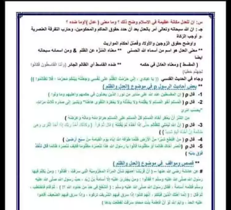 ج- العدل هو إعطاء كل ذي حق حقه من غير محاباة، وذكر في القرآن الكريم 16 مرة، أما الظلم فهو العدول عن الحق وذكر في القرآن 287 مرة، وفي هذا إشارة لخطورة الظلم وأنه ظلمات يوم القيامة.