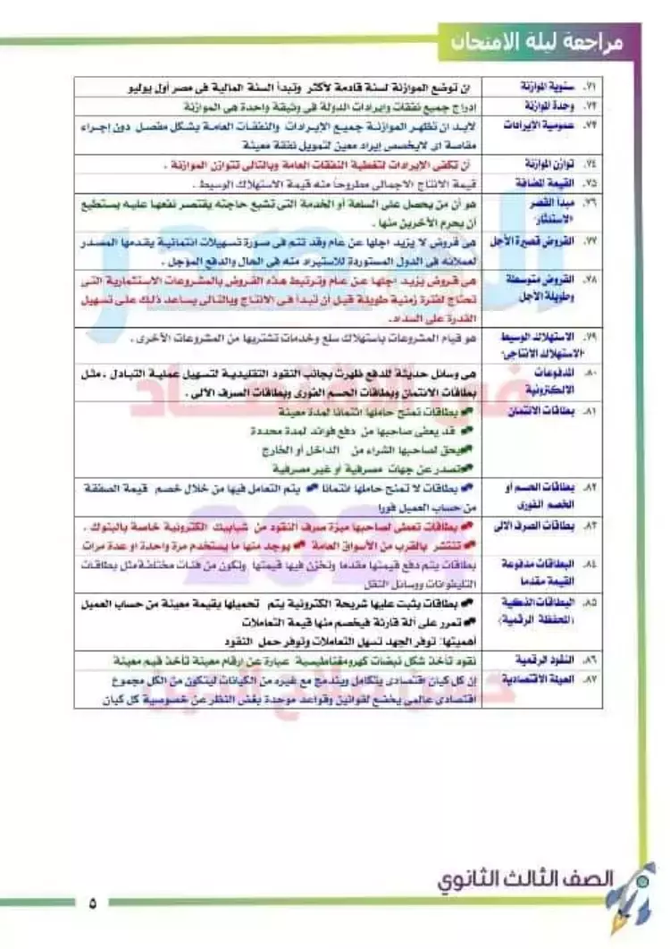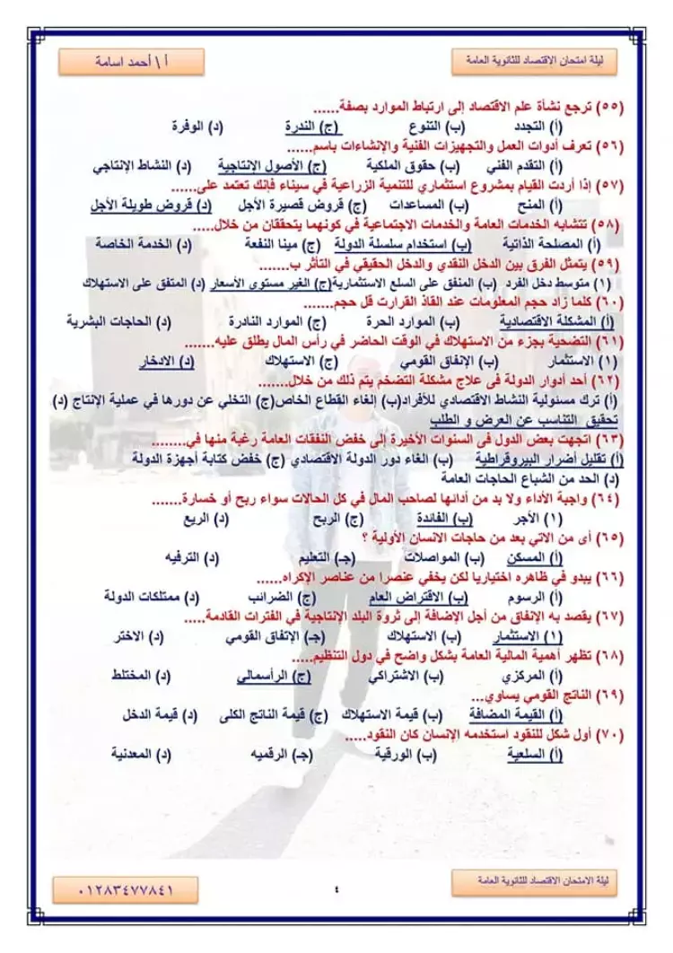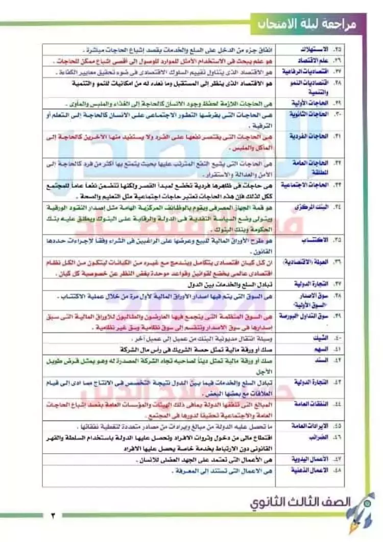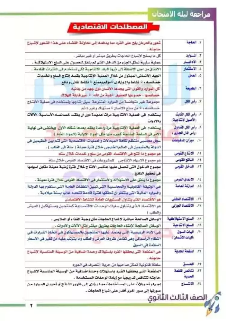 جاءت الأسئلة التالية ضمن مراجعة ليلة الامتحان اقتصاد للصف الثالث الثانوي: