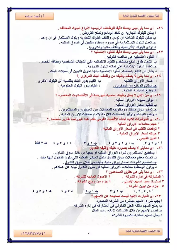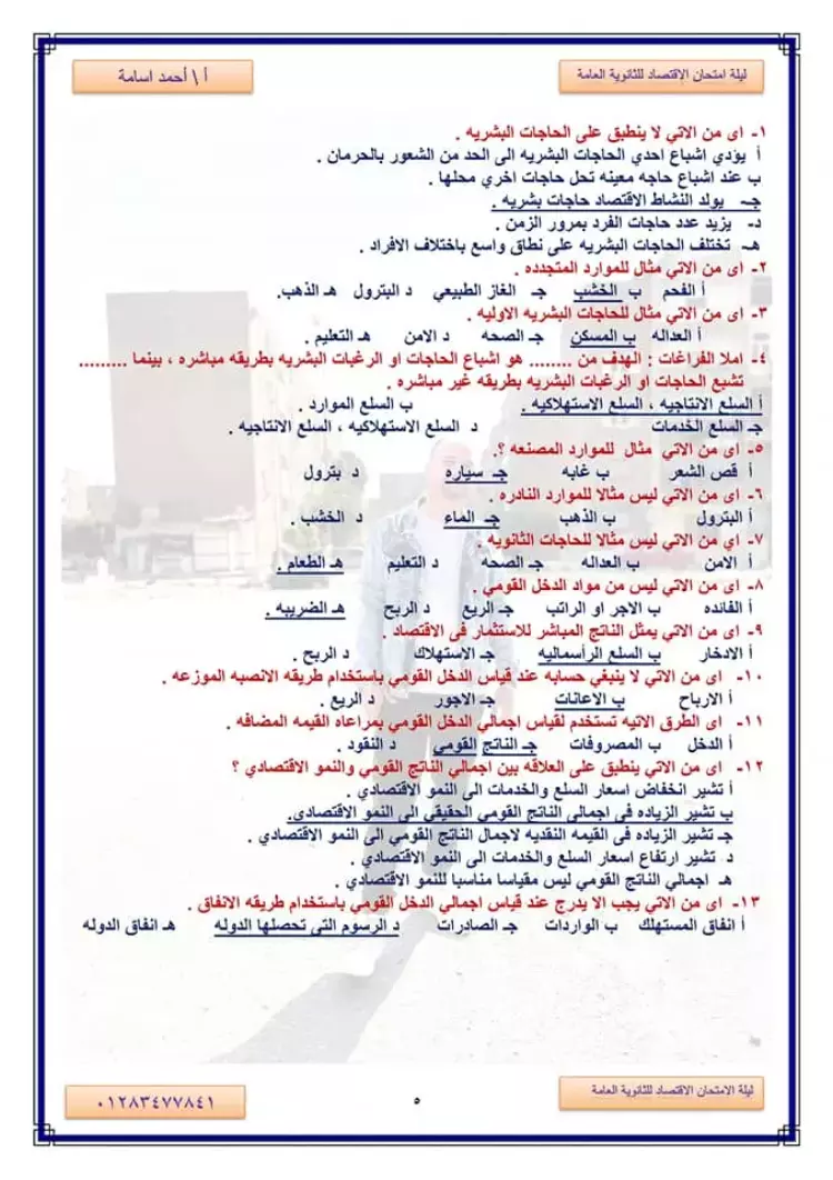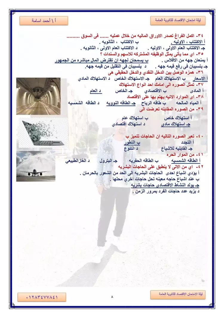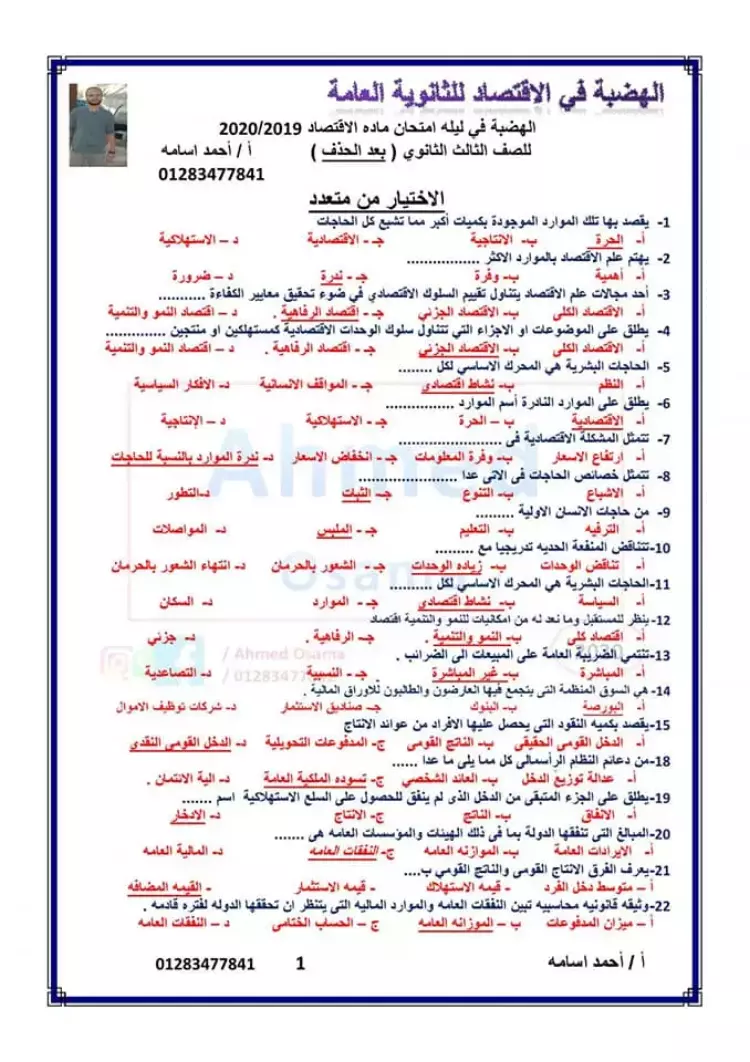 وفي هذا الصدد، يمكنك الحصول على باقي الأسئلة بالإجابات ومراجعة ليلة الامتحان اقتصاد للصف الثالث الثانوي كاملة من خلال الصور التالية: