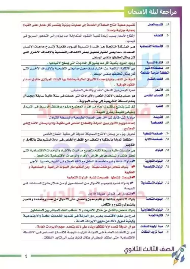مراجعة ليلة الامتحان اقتصاد للصف الثالث الثانوي 2024