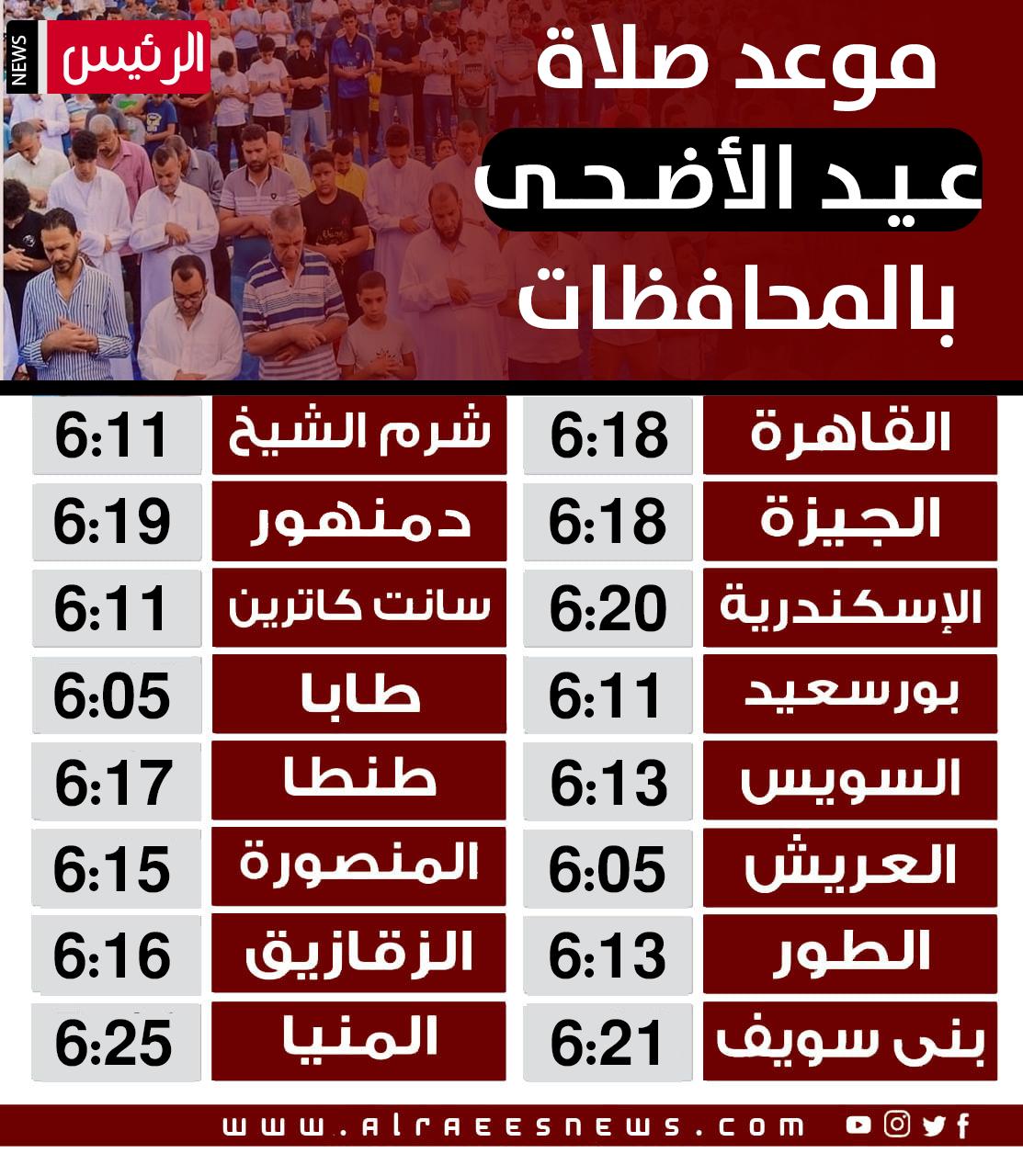 ولفت إلى أن صلاة عيد الأضحى ستكون في مدينتي الإسماعيلية ودمياط في السادسة و12 دقيقة، ونوبيع في السادسة و7 دقائق، وحلايب في السادسة و14 دقيقة.