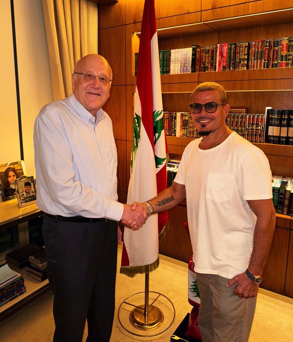 رئيس وزراء لبنان يستقبل عمرو دياب قبل حفله في بيروت