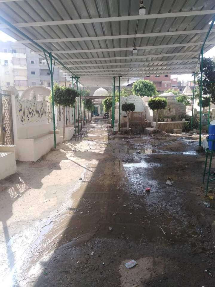 وفوجئ زوار الضريح بطفح كميات كبيرة من مياه الصرف الصحي وصل ارتفاعها لأكثر من 5 سم ليبدأ المواطنون والعاملون في الضريح على إزالتها، إلا أنها عادت مرة أخرى، مما يهدد بغرق الضريح بالكامل.