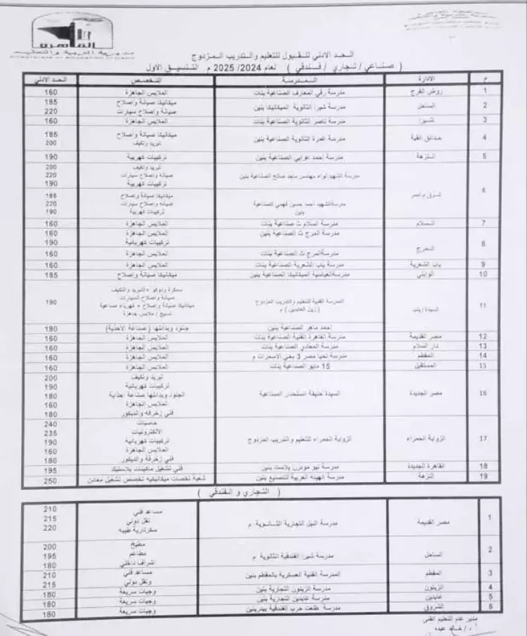 تنسيق الدبلومات الفنية 2024 2025 محافظة القاهرة لجميع المدارس