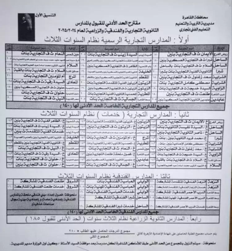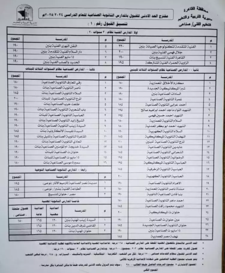 وفي هذا السياق، يمكن الاطلاع على تنسيق الدبلومات الفنية 2024 2025 محافظة القاهرة لجميع المدارس، وذلك من خلال الصور التالية: