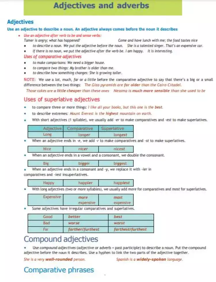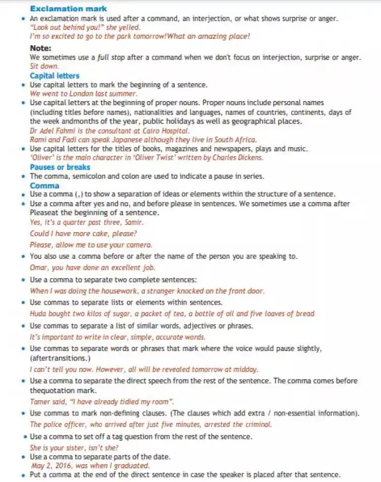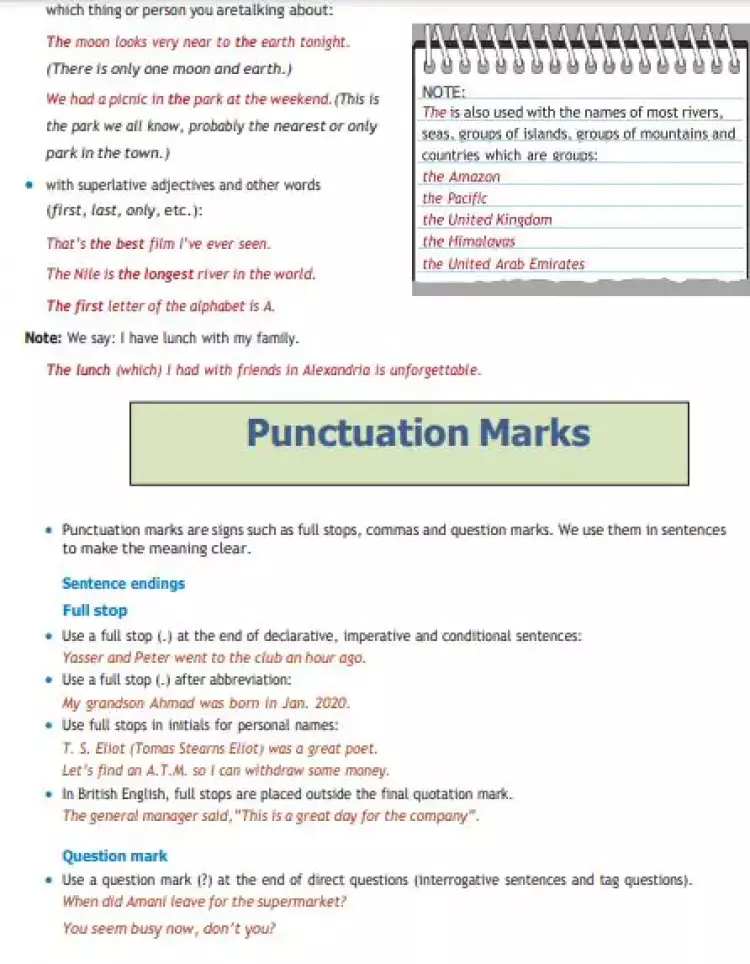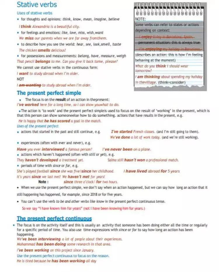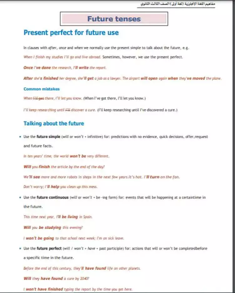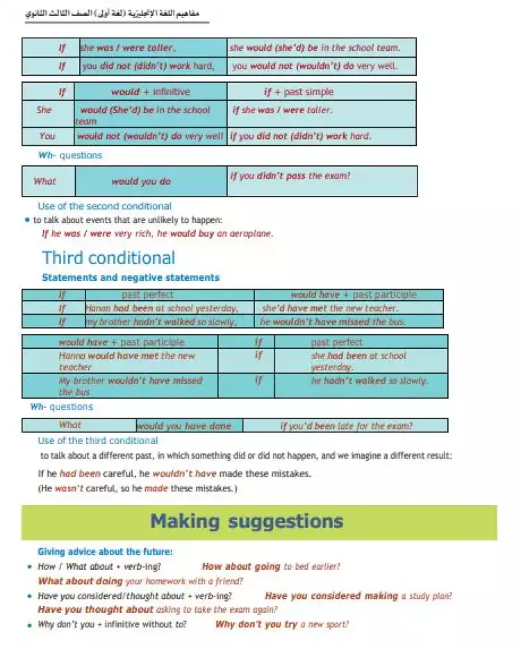 وفي سياق متصل، يتضمن كتيب مفاهيم إنجليزي الصف الثالث الثانوي شرحا وافيا لكافة القواعد اللغوية المتضمنة في المنهج، مع الأمثلة عليه، فيبدأ الكتيب بأزمنة الماضي البسيط والماضي المستمر والماضي التام والماضي التام المستمر.
