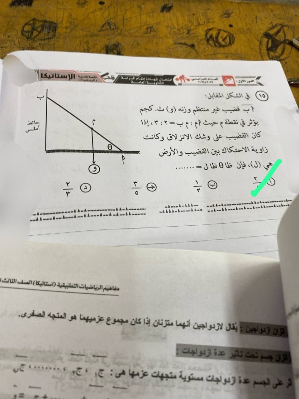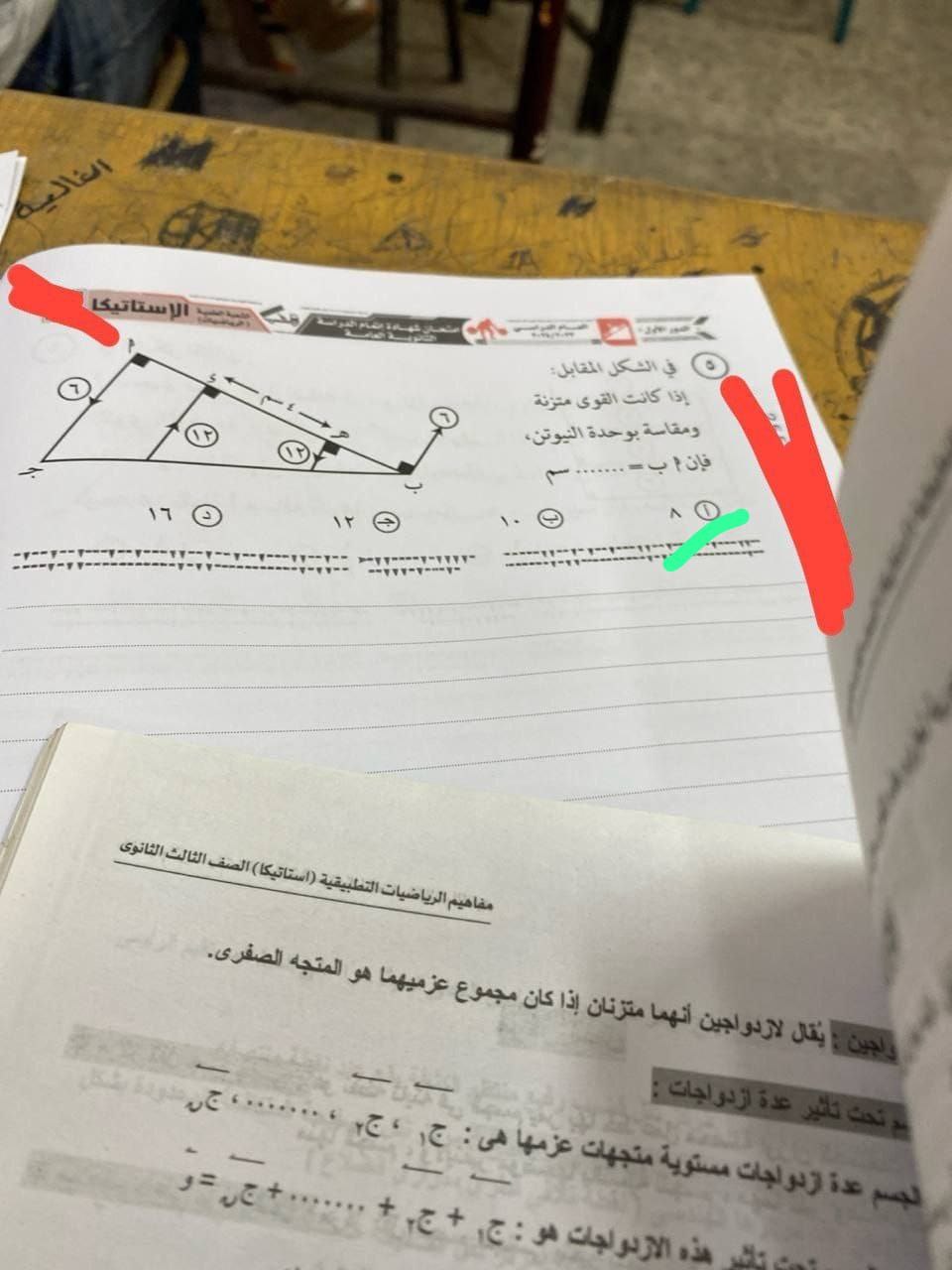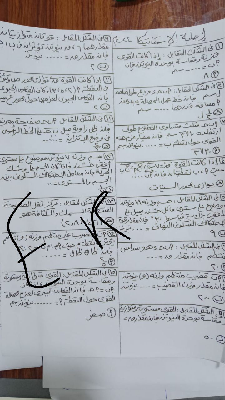 نموذج اجابة امتحان الاستاتيكا للثانوية العامة 2024