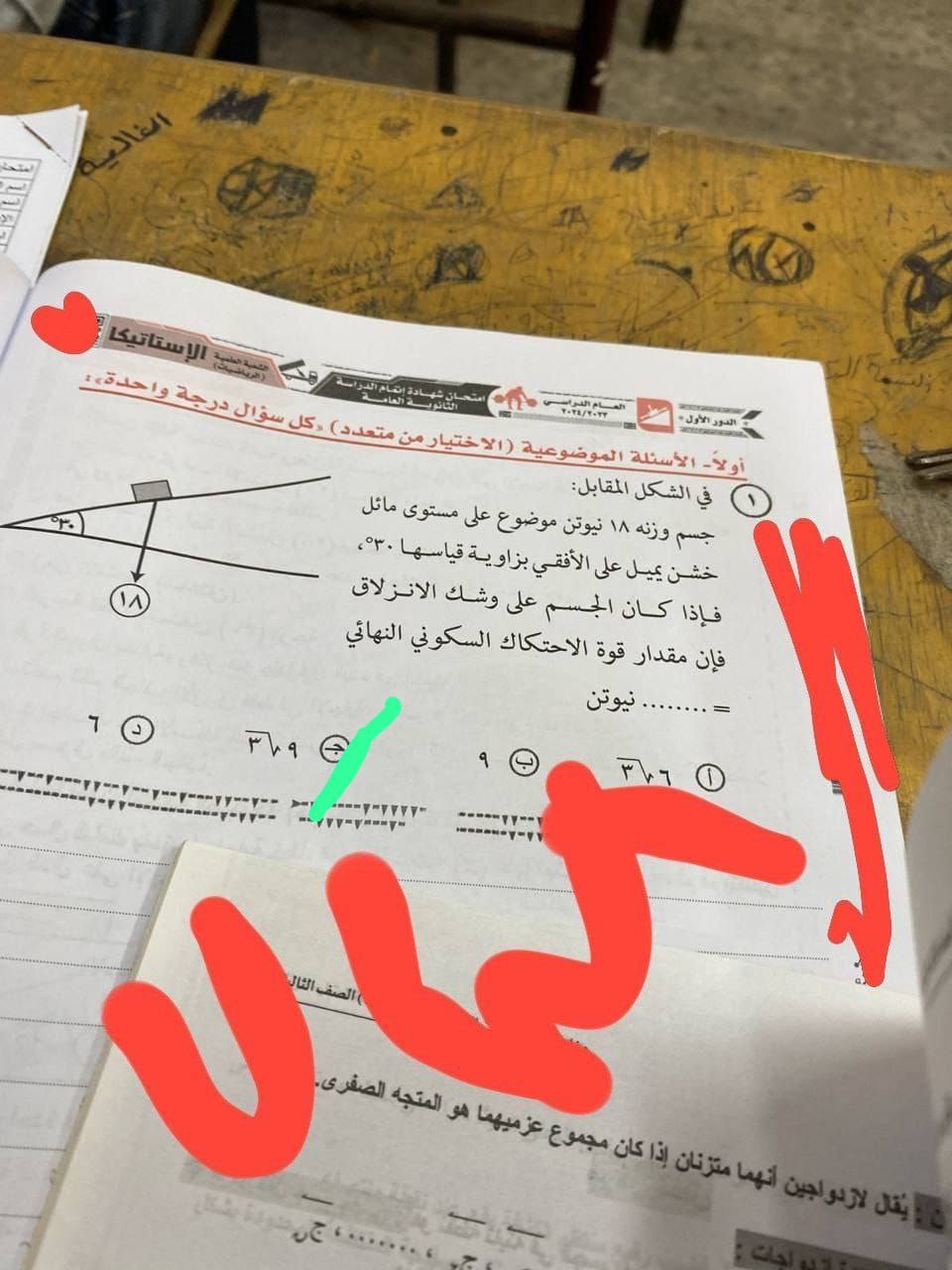 نموذج اجابة امتحان الاستاتيكا للثانوية العامة 2024.. اعرف الحلول الصحيحة